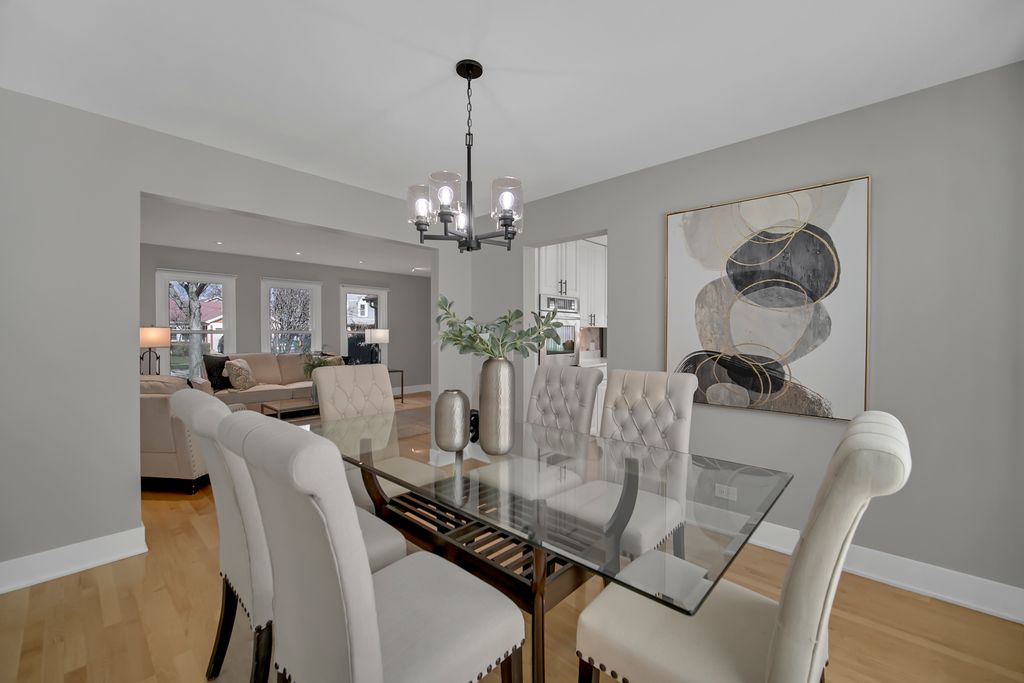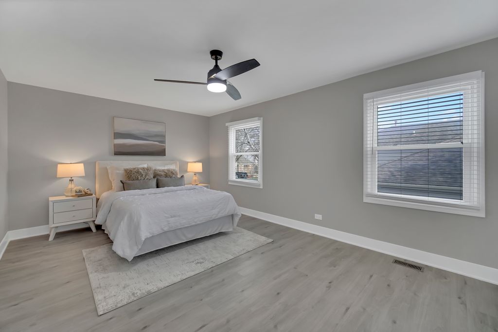 Beautifully updated and move-in ready, this spacious 4-bedroom (5th bedroom in basement), 2.1-bath home is located in one of Buffalo Grove's most sought-after neighborhoods, all within the highly acclaimed Stevenson High School district. Step inside to a bright, open floor plan featuring a dramatic two-story foyer, expansive living room, inviting family room, and a separate dining room-perfect for both everyday living and entertaining. The updated eat-in kitchen showcases new quartz countertops, modern lighting, and newer high-end stainless steel appliances. Extensive recent improvements provide peace of mind, including a brand new roof, HVAC system (brand new furnace and A/C), brand new water heater, updated lighting, and new flooring throughout-hardwood on the main level and luxury vinyl plank on the second floor and basement. The finished basement offers incredible flexibility with a 5th bedroom, wet bar, and abundant storage-ideal for guests, a home office, or recreation space. Enjoy outdoor living in the fenced yard featuring a brand-new concrete patio and underground sprinkler system. Additional highlights include an attached epoxy flooring - two-car garage and windows approximately 10 years old.