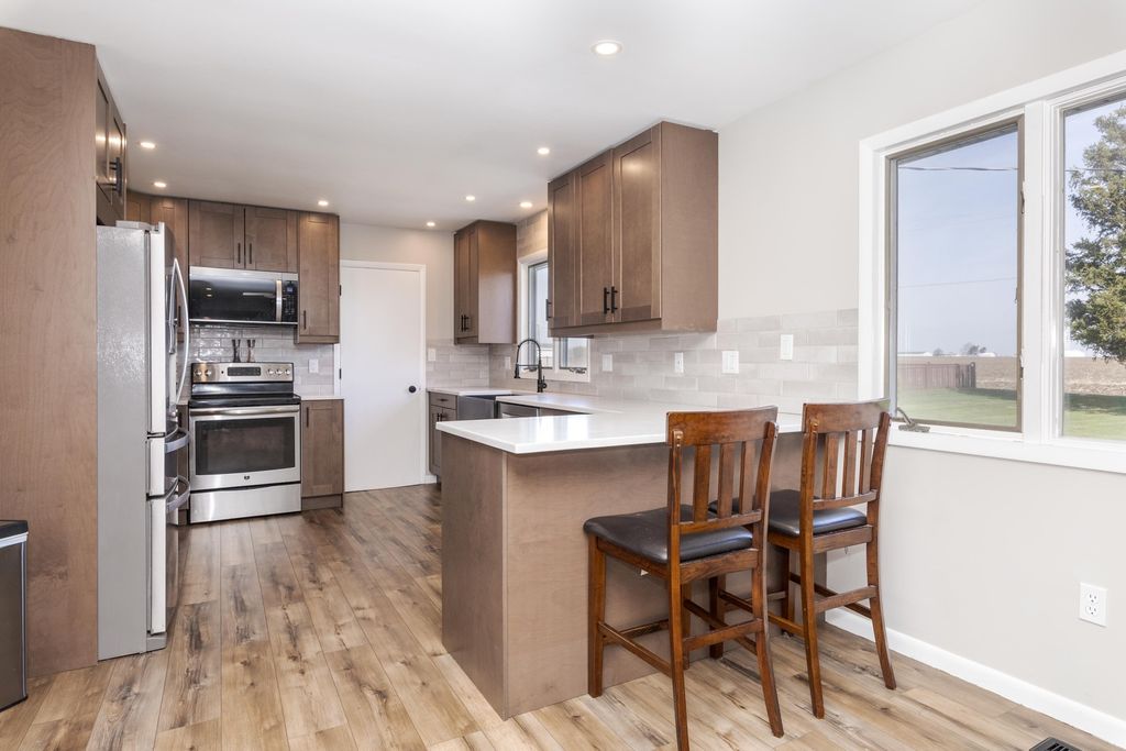 You're going to love the fresh modern renovations in this 3-bedroom, 2-bath home! Step into the inviting living room featuring a gas-burning fireplace, plush and luxurious carpeting through living room and bedrooms with beautiful LVP in the rest of the home, fresh paint throughout pairs beautifully with the stunning 2025 large kitchen remodel complete with soft-close cabinets, amazing pull-outs and pantry space, quartz counters, tile backsplash, farmhouse sink and faucet, recessed lighting, counter seating all open to the dining area and family room. Full bathroom and laundry room updated in 2025 as well. Sliding glass doors lead to the spacious .48-acre backyard with no backyard neighbors. Unwind and take in beautiful sunsets from the porch swing under the large covered pergola with roll down shades, a perfect space for relaxing or entertaining. Additional features include a 2-car attached garage, large driveway with plenty of parking, an extra concrete pad along the side of the home for additional parking, shed and generator that stays! This is truly your little piece of paradise in a beautiful location!