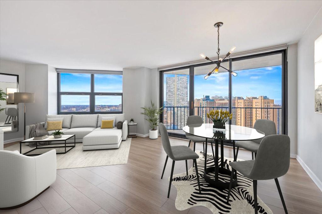 You won't want to miss this gorgeous 2BR/2BA at The New York Private Residences - one of the PREMIERE communities in Lakeview East! Enjoy one-of-a-kind sweeping views of the lake, city and Wrigley from this renovated, 2BR/2BA with rare DEEDED PARKING SPACE included in the price! Featuring wall to wall views in every direction, luxury vinyl floors, a fabulous large kitchen with plenty of prep space, a walk-in Pantry, natural stone countertops, crisp white cabinetry, all NEW state-of-the-art stainless appliances and induction stove, custom lighting and hardware throughout, plenty of storage options and almost too much to list! The baths are fully updated and offer a soaking tub in one and a walk-in shower in the other. This fantastic CORNER UNIT offers a unique floor plan with dedicated spaces for living and dining, is the only floor plan with 7 huge picture windows with wraparound views in every direction and a private balcony! And as its the unobstructed corner, the light is spectacular and the home is serenely private and set back from LSD. Assessments include all utilities, garage parking space, cable, internet - all you pay is electric. Monthly Assessment Breakdown: Unit $730.26, Parking $97.24, Cable/Internet $65.00. Two Bedroom units rarely come on market in this building so don't miss your chance on this one! The New York is a full amenity building and offers 24 hour door-staff and on-site maintenance and management. Building amenities include Party Room, Fitness Center (FFC), Roof Top Party Room, Sun Deck, Commissary and more! Building Info: No Specials Pending or Planned | Reserves Approx. $2.5M | Parking Space 209 Included | $250 Move-in/Move-Out Fee | Bike Room $25/Year | 2 Dogs Permitted per Unit, Maximum 100lbs. | Pet Fee $100/Year | EV Chargers and Guest Parking Available. This home sits in a superior location along Chicago's famed lakefront, in one of the best buildings in the city, offers an easy and convenient lifestyle, unparalleled views and the best of Lakeview East shopping, dining, and entertainment close by and many public transportation options at your doorstep. Welcome Home!