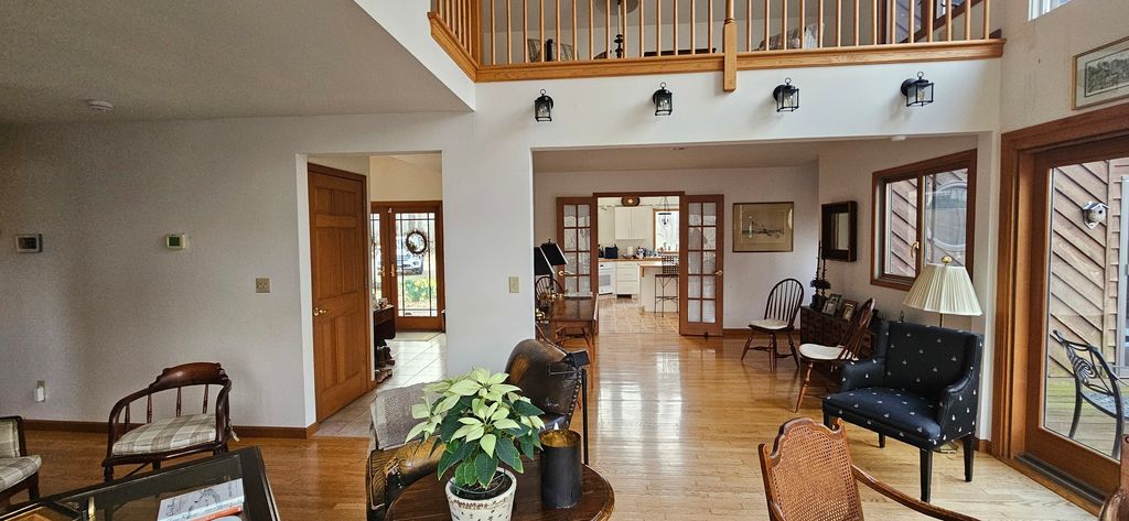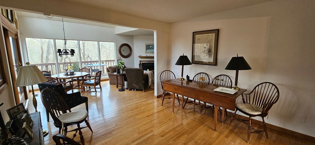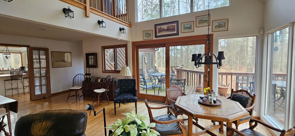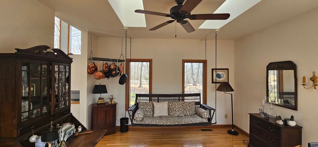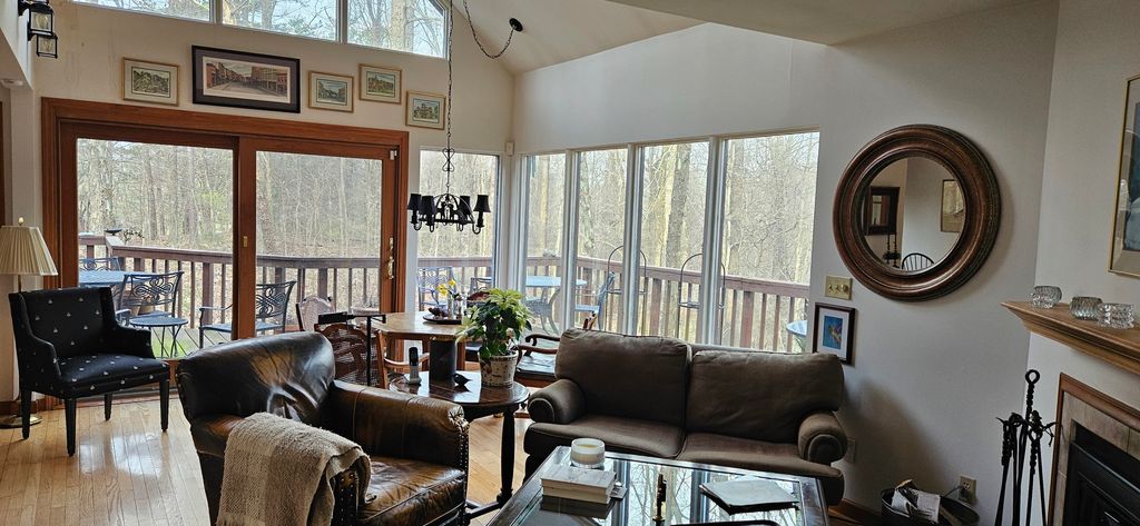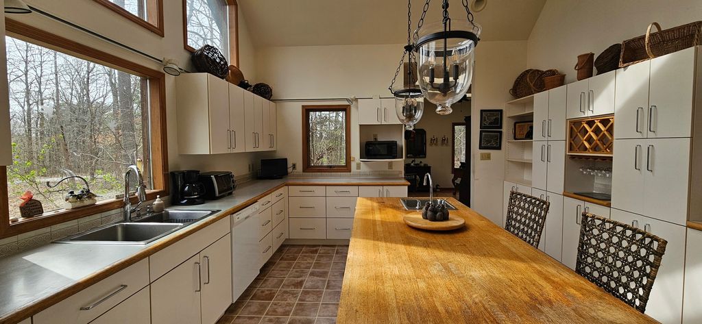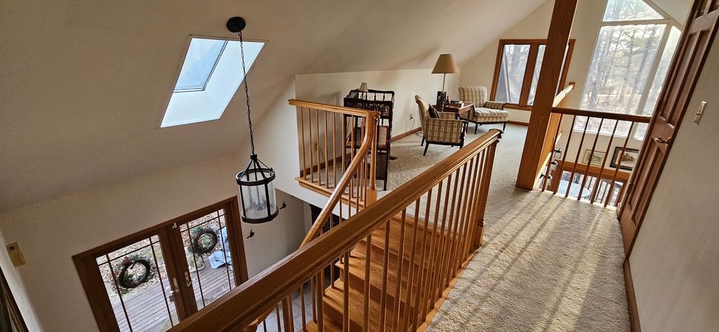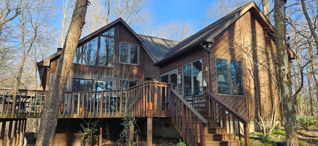 This charming 3 bed, 3 bath "tree house" is adorned with walls of windows overlooking a spacious elevated back deck and wooded one-acre ravine. The 2,400 sf home in Union Hills features vaulted ceilings, skylights, French and sliding glass doors to allow in natural light throughout. The large airy kitchen centers around a full island perfect for entertaining with easy access to the "formal" dining room (currently being used as an office/study). The main floor living room has beautiful hardwood floors and a woodburning fireplace. The primary bedroom and bath were redesigned and now located on the first floor. Upstairs the cozy loft leads into a bed and private bath combo. Downstairs the basement provides an additional 675 sf of furnished living space with another bedroom and open family/rec room. The large utility room (former laundry room) could easily be turned into a fourth bath. Situated in a quiet community in Unity Point School District, this one-of-a-kind home is a tranquil retreat. The seller maintained an annual service contract with Terminix and Jacobs Heating & Air and will be providing a 1-year home warranty with American Home Shield. Some of the remaining furniture is also available for purchase.