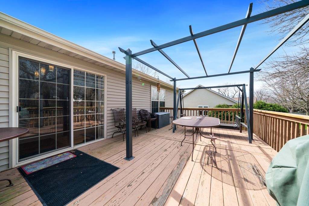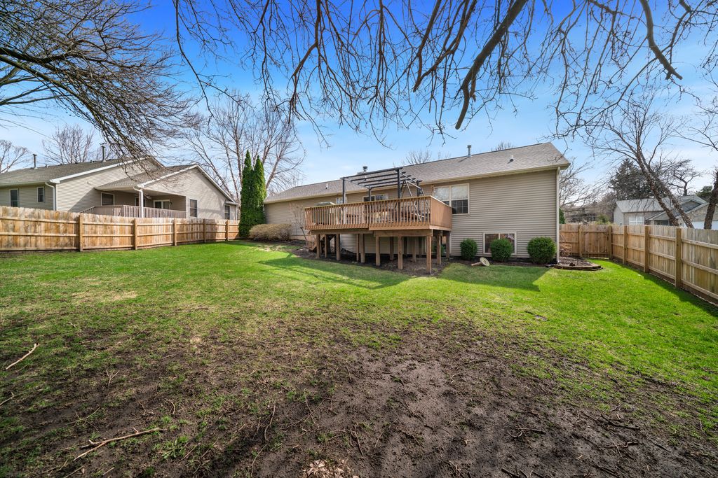 Move-in ready and beautifully maintained 4-bedroom, 2.5-bath home with a 2-car garage! The inviting living room features a vaulted ceiling and cozy fireplace, creating a bright and open living space. The primary suite offers a private bath and two closets, including a walk-in closet. Fresh paint throughout the home-including trim-adds a clean, updated feel. The lower-level bedroom includes newly installed LVP flooring and a recently added walk-in closet, providing extra comfort and functionality. Step outside to a spacious deck with pergola, perfect for relaxing or entertaining, along with a partially fenced backyard offering added privacy. This well-cared-for home is truly move-in ready-don't miss it!