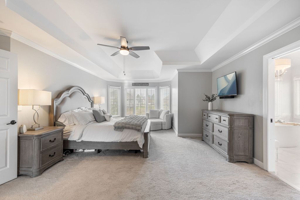 Exquisitely updated River Run home offering timeless elegance, exceptional craftsmanship and a fully integrated smart-home lifestyle. Completely transformed with designer finishes and extensive upgrades, this residence is truly move-in ready. The dramatic two-story family room is a standout, featuring carved wood architectural details, floor to ceiling windows, a gas starter fireplace, and a custom designed entertainment center that remains with the home. Newer carpeting in the family room and on the second floors, along with refinished hardwood floors (2021) to create a fresh and refined backdrop throughout the open flow on the first floor. The modern classic white kitchen boasts granite countertops, newer stainless-steel appliances, and an oversized island with seating, walk-in pantry, planning desk, coffee bar, and a sunlit breakfast area - ideal for both everyday living and entertaining. Formal living and dining rooms offer tray ceilings, bay windows, elegant chandeliers and custom drapery. The library-office is the perfect space to work from home with its beautiful built-in bookshelves, and paned glass French doors. This room can be used as an in-law suite with the use of an adjacent full bath. Laundry room with marble backsplash, porcelain floor, stacked washer & dryer, sink, coat rack and storage cabinets and shelving. Upstairs, all bedrooms feature customized walk-in closets, bay windows, and tray ceilings with crown molding. The primary suite is luxurious retreat with French doors, and expanded custom closet, and a private office/workspace discreetly tucked behind a hidden door in the primary closet. The spa-like primary bath features dual vanities, marble shower, heated Kohler soaking tub, and heated marble floors. Secondary bedrooms include and updated Jack-and-Jill bathroom and an additional ensuite bedroom. The finished lower level is designed for both relaxation and entertainment, complete with a theater with surround sound, wet bar with seating and a beverage fridge, wine cellar and fitness area, guest bedroom with egress windows, and a full bath with a steam shower. Extensive storage areas are clean and organized. Plenty of space for storage. Outdoor spaces include a fenced backyard, updated deck with brand-new railing and a gas line for grilling, wireless sprinkler system, and professionally maintained landscaping. The heated three-car garage showcases epoxy flooring, smart openers, custom cabinetry, and shelving. River Run Club equity membership that will transfer with the sale. Major system upgrades include two newer furnaces (2018 & 2023), tankless water heater, whole house fan, electrostatic air purification system, humidifiers with digital controls, automatic blinds, Ecobee thermostats, new sump and ejector pumps, and full smart-home integration. Whole home water filtration system. Lorex security system and keyless entry front door. Ideally located just minutes from shopping, dining, and everyday conveniences, with easy access to major highways, public transportation, and top-rated 204 schools. This exceptional home blends luxury, comfort, and convenience in one of River Run's most desirable neighborhoods and settings. The homeowners had a pre-inspection done before listing and shelving in basement storage will be going with homeowners.