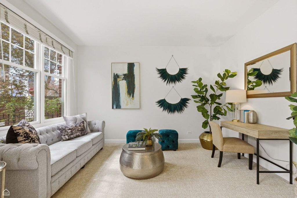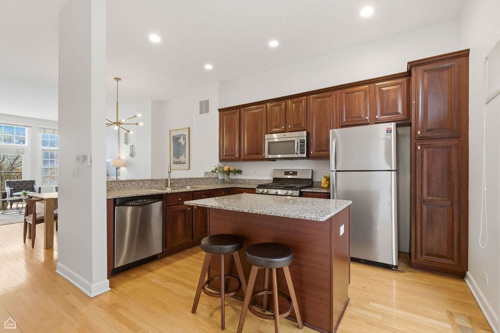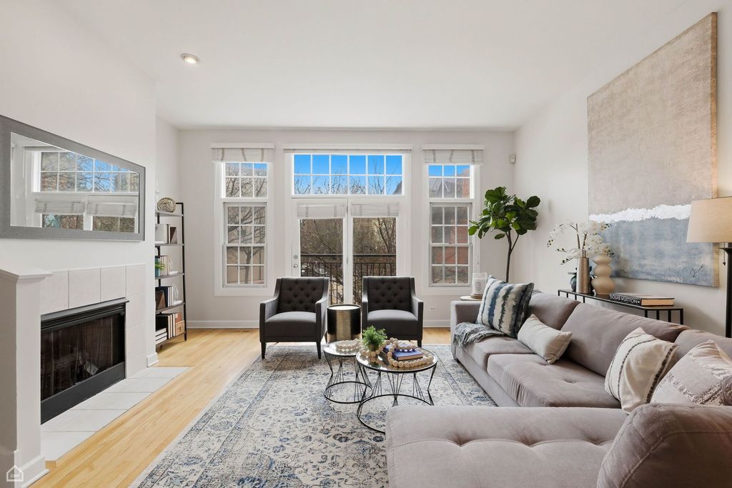 Located in the highly sought-after Ogden School District, this stunning and updated 4-level townhome that sits like a single-family home offers the perfect blend of space, light and modern city living. This spacious 3-bedroom, 2.5-bath residence features multiple outdoor spaces, hardwood floors, brand-new luxury carpeting and three distinct living areas. The flexible first-level living space is perfectly proportional and adapts easily to your lifestyle. Ideal for a home office, guest suite, or a secondary lounge. The main level showcases a seamless open-concept layout, where the expansive living, dining, and kitchen areas flow effortlessly together and are filled with natural light. The living room is anchored by a cozy gas fireplace, adding warmth and character. The kitchen features rich dark cabinetry, granite countertops, GE and Bosch stainless steel appliances, a large island with additional seating, a pantry closet, and direct access to a private balcony for grilling. A conveniently located powder room completes the level. Upstairs, the primary suite offers a true retreat with a large closet and a spa-like en-suite bath featuring a double vanity, soaking tub and separate shower. Down the hall, you will find an additional king-sized bedroom and full bathroom that offers a practical and cohesive layout for family or guests. The top level completes the home with a large storage closet and access to a private rooftop deck, perfect for relaxing or entertaining with elevated city views. Additional highlights include an attached 2-car garage, in-unit laundry and additional storage throughout. Ideally located in West Town, just steps from Milwaukee Ave for shopping and dining, the Chicago Blue Line, Gangnam Market, and access to the highway for everyday conveniences. This one truly has it all!