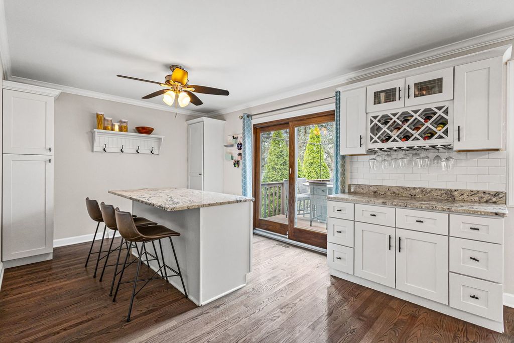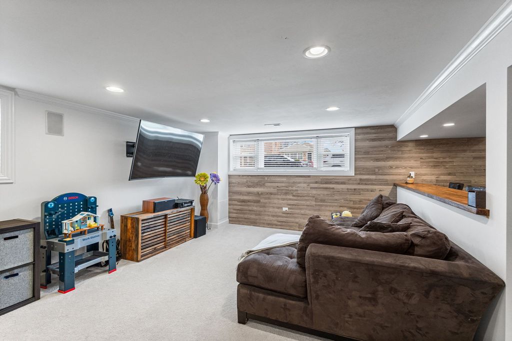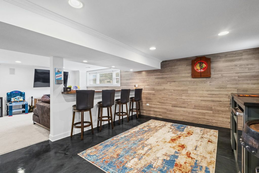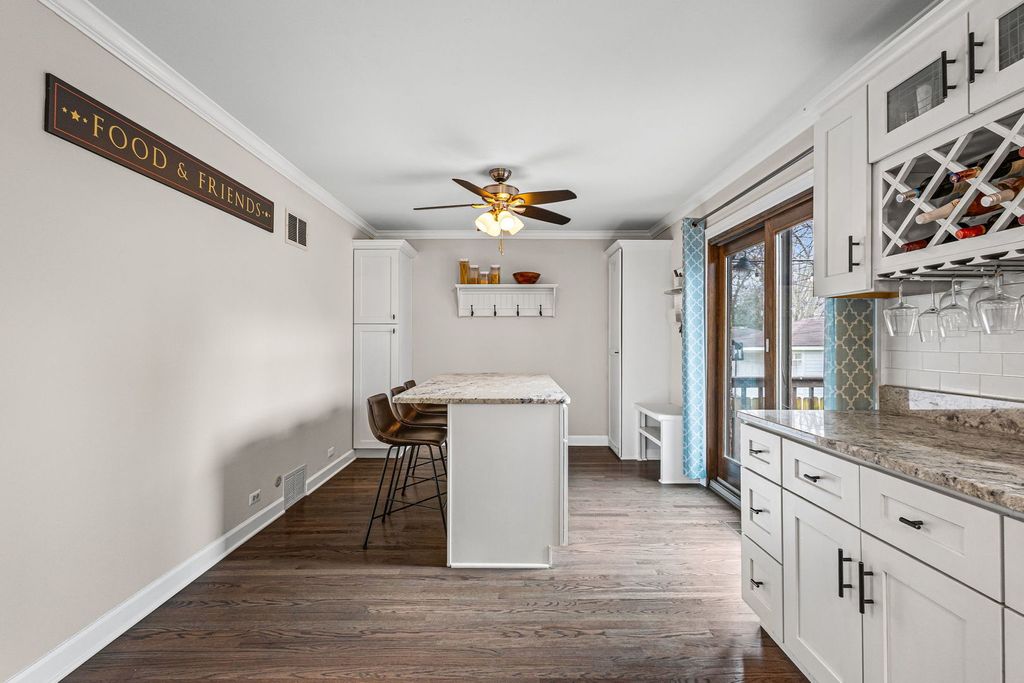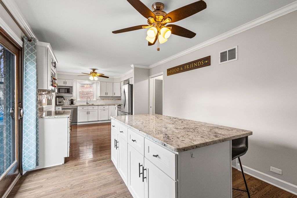 Absolutely stunning 4-bedroom, 3-bath home in the highly sought-after Edgebrook neighborhood and award winning Wildwood School District. This home has been thoughtfully updated throughout and move-in ready. A charming front porch welcomes you into a bright and inviting interior, featuring a spacious living room with east-facing bay windows and a beautiful fireplace with stone surround. The open, generously sized dining area is perfect for both everyday living and entertaining. The updated kitchen is a true centerpiece, boasting a large granite island, abundant custom white cabinetry, stainless steel appliances, and seamless access to the backyard patio and professionally landscaped yard. The main level offers three spacious bedrooms with excellent closet space, along with two beautifully updated bathrooms. The fully finished lower level is an entertainer's dream, complete with an expansive family room, custom bar area, fourth bedroom, full bath, and dedicated laundry room. A rare 2.5-car garage, accessed via a quiet dead-end drive, provides added convenience and a safe space for outdoor enjoyment. Ideally located just steps from Wildwood School and Park, the Metra, Forest Preserves, and a variety of shops and restaurants-this home truly has it all.