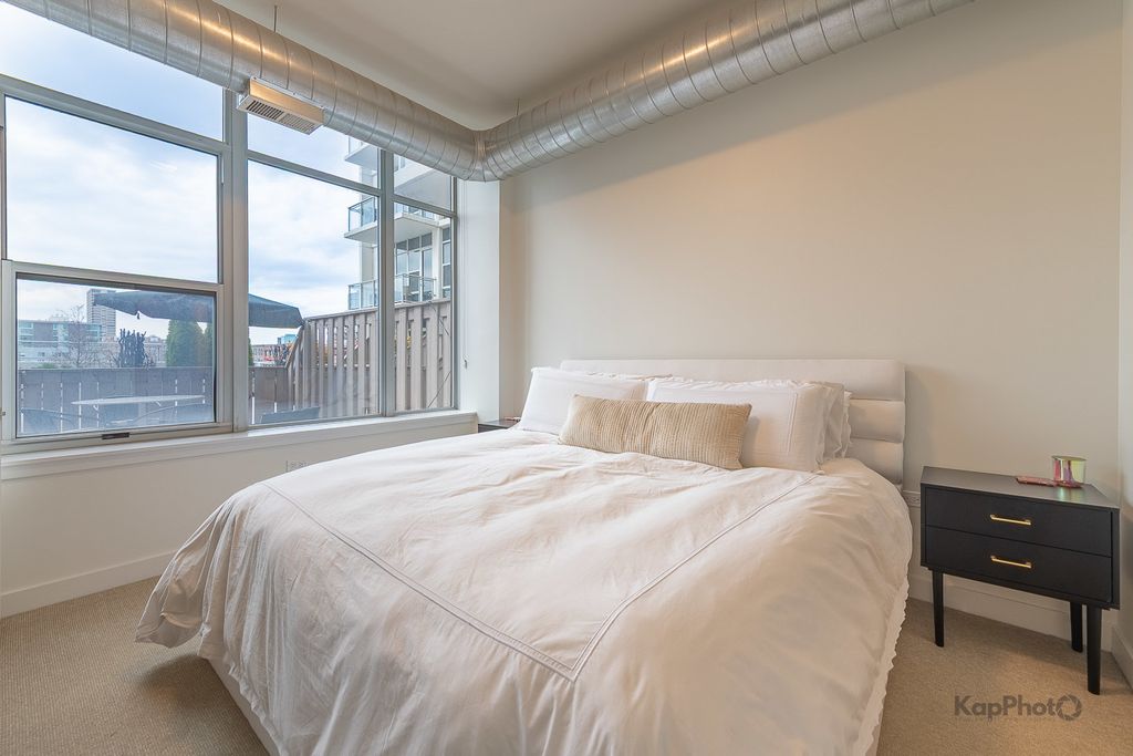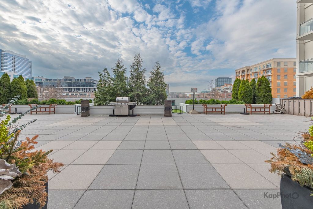 Spacious and pristine south facing 1 bed/1 bath with huge private terrace and best parking space in high amenity building and outstanding West Loop location. Exceptional bright and recently painted, this unit is appointed with hardwood floors, tall ceilings, large windows, and in-unit washer/dryer. Kitchen features plenty of cabinet space, stainless steel appliances, granite countertops, and large island. Fully enclosed bedroom with access to bathroom that also serves as a powder room. Highly inclusive monthly assessment includes heat, gas, internet, and water. Amenities include door staff, gym, 4th floor courtyard, dog run, top floor sundeck, recreation/party room, storage cage, and bike storage. Prime heated end parking space an additional $35,000. Situated on Madison Row only a block to Mary Bartelme Park and steps to Whole Foods, Mariano's, shops, restaurants, the loop, public transportation, Greektown, and the Fulton Market District.