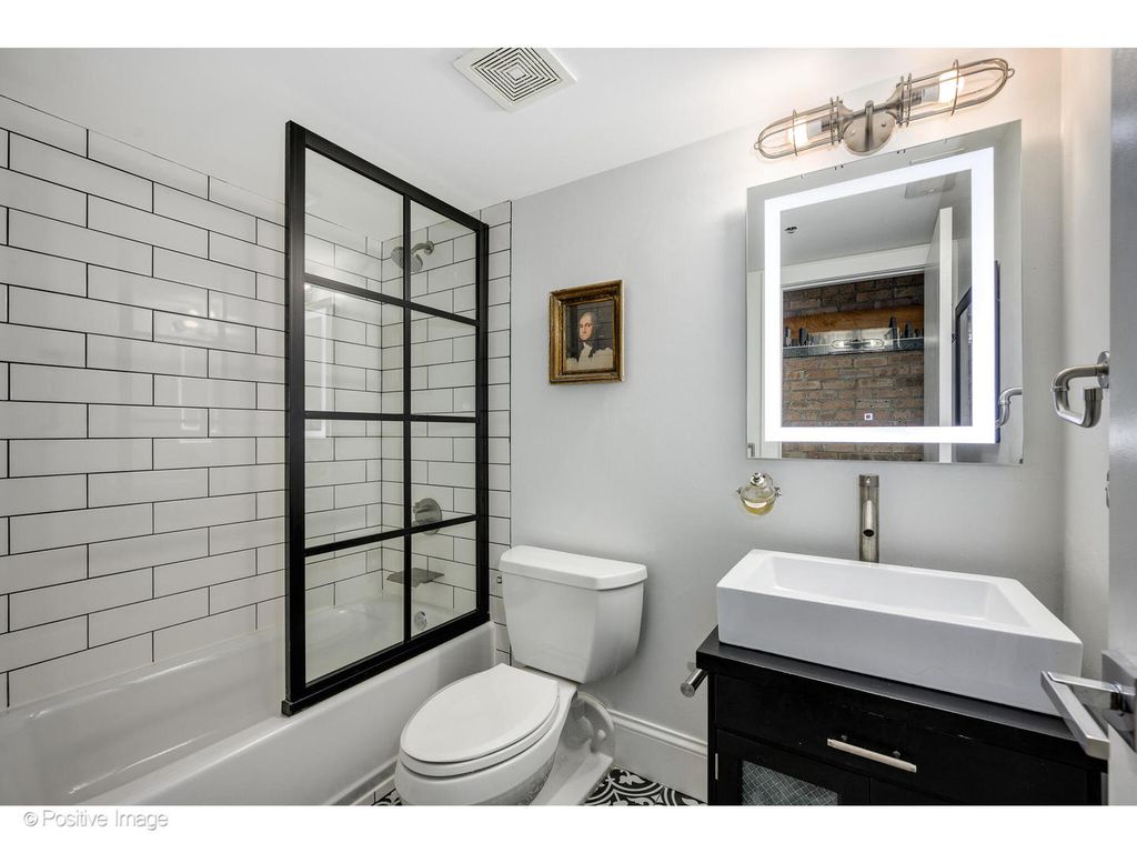 Spectacular penthouse duplex loft with stunning, skyline views in the heart of Chicago's vivacious South Loop neighborhood! Gut rehabbed in 2017, the owners reimagined the space, creating a home that is as vibrant as it is chic. Upon entry, an elevated entry foyer highlights the soaring, 14 ft timber beamed ceilings. A few steps down into the living space, exposed brick, an open floor plan, flawless hardwood floors, and giant windows help create a cool, yet relaxed vibe throughout the residence. The spacious living / dining area features a two-sided Napoleon BHD4PG Peninsula w/ fire glass fireplace and access to a 29ft balcony showcasing stunning, north-facing views. The living space flows seamlessly into an impressive cook's kitchen featuring Azul Imperial Quartzite countertops, Koak Design (Netherlands imported) Island wood cabinets / Dover white shaker wall cabinets, a Rockler Rolling ladder for high cabinets & storage, custom tile backsplash, an oversized island with breakfast bar illuminated by Elida Antique Brass Island pendant lights, and top-of-the-line Viking appliances. The primary suite enjoys the other side of the two-sided fireplace along with an abundance of natural light, an Emerson ceiling fan, custom designed walk-in closet with Red Elm Slab Closet door, and a luxurious ensuite bath with a steam shower and Hans Grohe Axor brushed nickel overhead rain shower, handheld wand and regular showerhead, Columbia double sink bathroom vanity, Dual Grohe Faucets- Aeropure, Kohler toilet, and a 72x36 Lighted vanity mirror. A graciously sized second bedroom clad in exposed brick walls enjoys an exquisitely appointed ensuite bath with Kohler Chrome Tub/Shower trim & toilet, Black Aluminum glass partition, and 24 x 32 Dimmable light in mirror. A laundry closet with stackable Whirlpool washer and dryer. Upstairs you will find a second level, a new addition and private roof deck added to the property in 2021. The stairway is lit by a Gravity chandelier by Forestier. At the top of the stairs, a family room awaits complete with a wet bar with and Abosi wine/beverage fridge, refrigerator and freezer drawers, Redrock Verge Hex Tess backsplash tile, Majestic 3cm Quartzite countertops, a Brizo kitchen faucet pulldown, and Crystorama Calypso Mini Chandelier. A wall of floor-to-ceiling windows slides open and leads to a 714 SQFT private roof deck - a true urban oasis with incredible skyline views. This home is the perfect place both to entertain on a large scale as well as live comfortably with many serene spaces to relax and unwind. The second level also features a third bedroom with white, brick walls and timber ceilings and a full bath with Kohler Chrome Shower trim, Concrete floor tile, and a unique wall-hung sink. One deeded parking space included in the price. Ideally situated within close proximity to the lake, parks, playgrounds, Soldier Field, Museum Campus, schools, and public transportation.