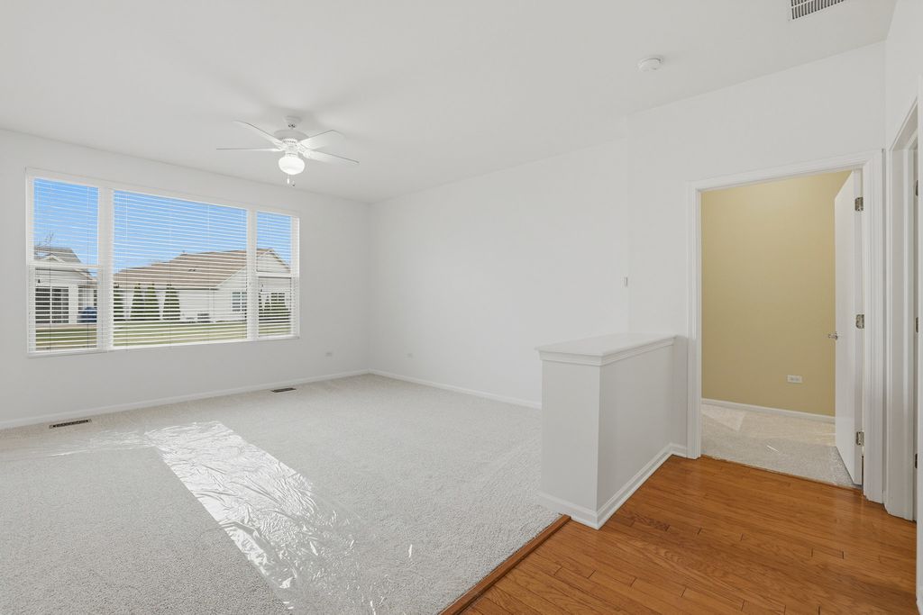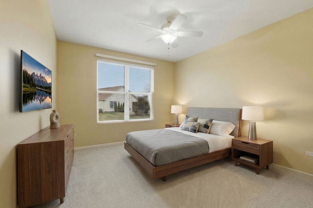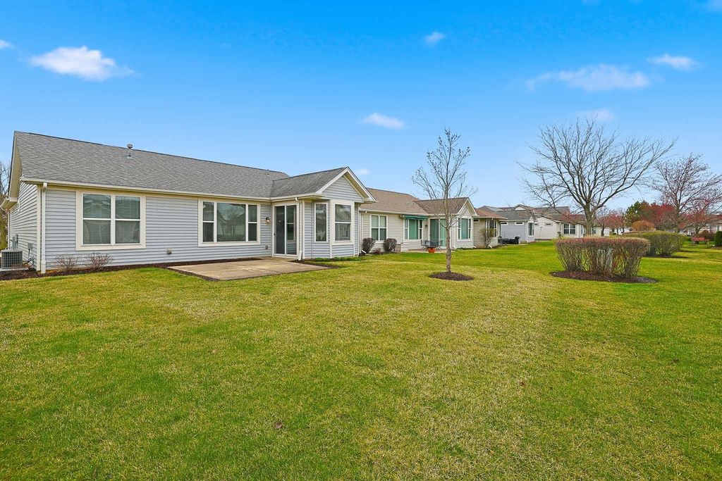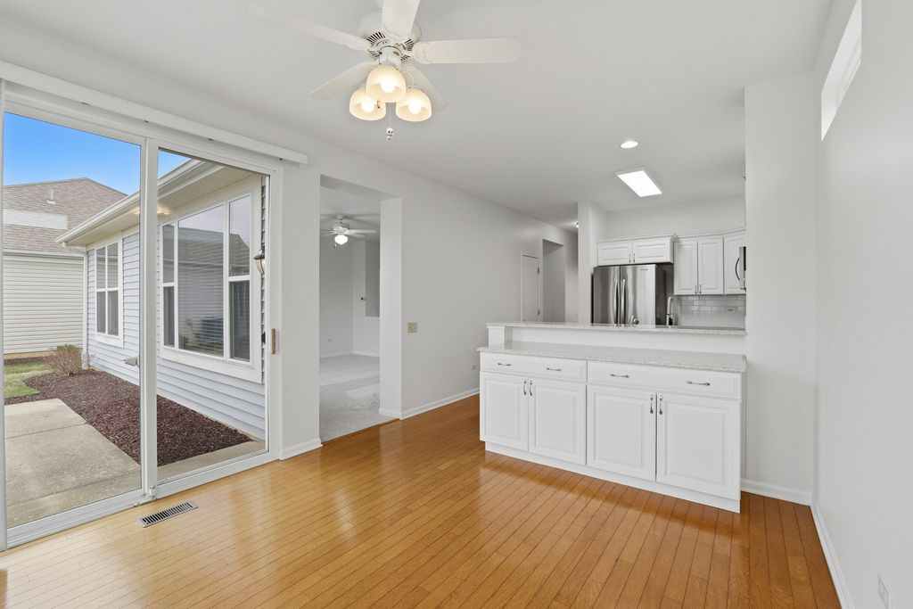 Beautifully Updated Escanaba model perfectly situated about a mile from the amazing Prairie Lodge. This move-in ready 2 bedroom, 2 bath home offers easy single-story living with modern updates throughout. The Newly polished hardwood floors flow from the foyer thru the hallway and into the kitchen/breakfast area, creating a cozy and inviting feel. The kitchen greets you with BRAND NEW White Cabinets and Quartz Countertops; and SS appliances that are just a few years old. The breakfast area features a bay window letting in plenty of sunshine. The living room boasts NEW carpeting and a large window continuing the light and bright feel of the home. The primary and 2nd bedrooms also feature NEW Carpeting and both baths have been updated with NEW Luxury Vinyl Plank flooring. A lovely yard with a lawn irrigation system and a great patio to enjoy the summer. Additional updates include a NEW Furnace and Air Conditioner for added peace of mind. New paint in the living room, kitchen and foyer. The roof was new in 2017 and last, but not least, NEW Ceiling fans have been installed in the kitchen, living room and bedrooms. Come and enjoy all the amenities that Sun City has to offer! A gorgeous clubhouse, indoor and outdoor pools, fitness centers, tennis & pickleball courts, Wood shop, numerous activities and so much more!