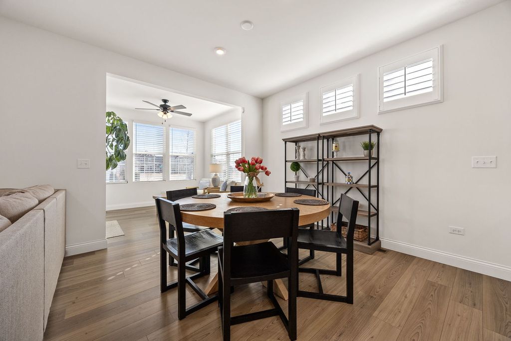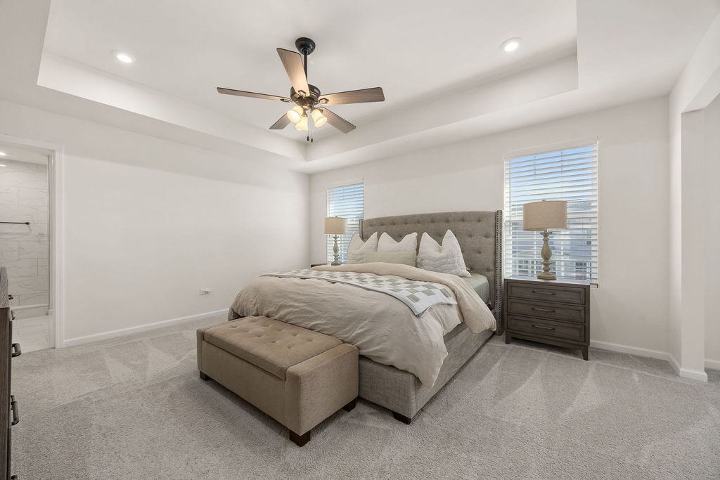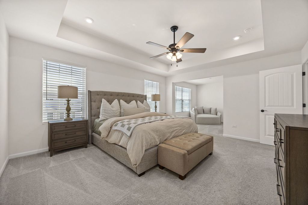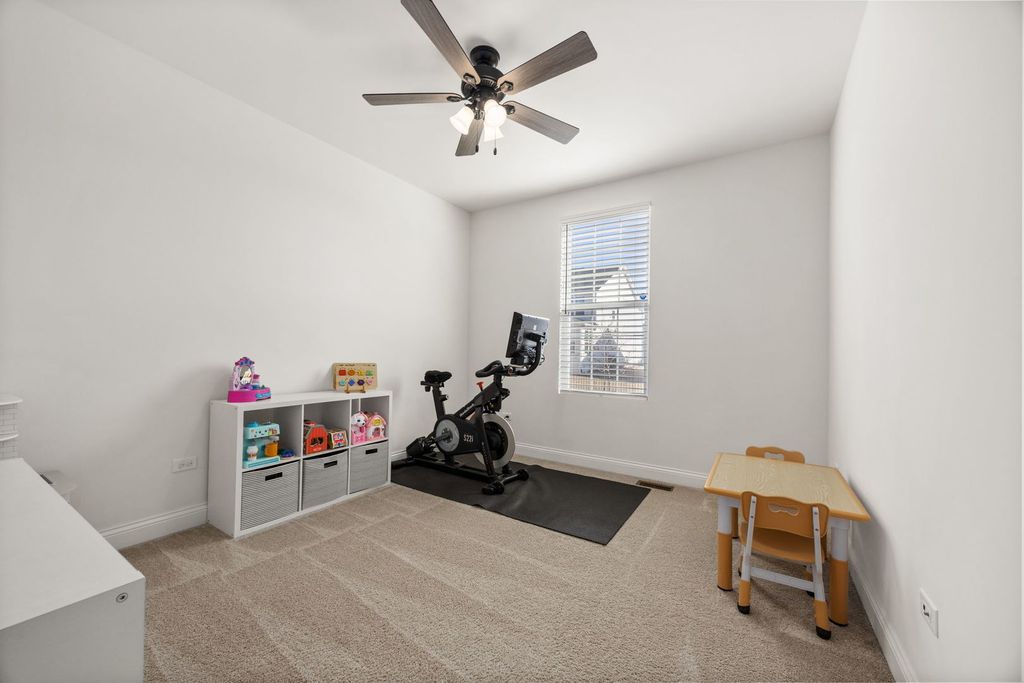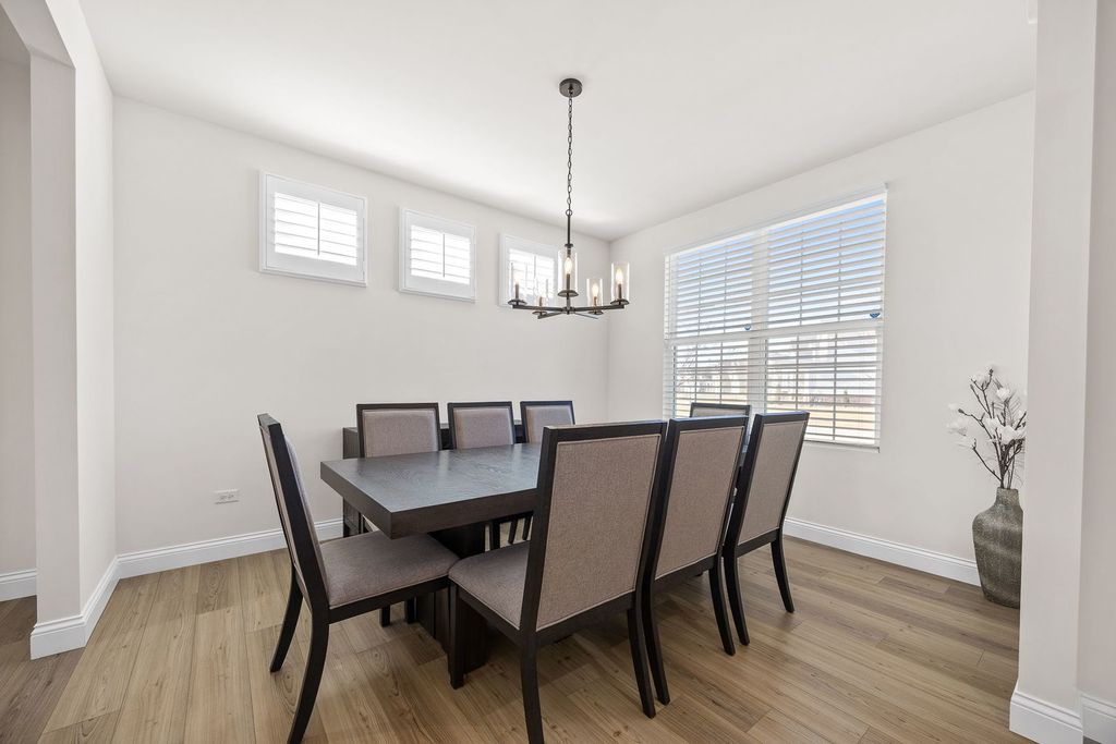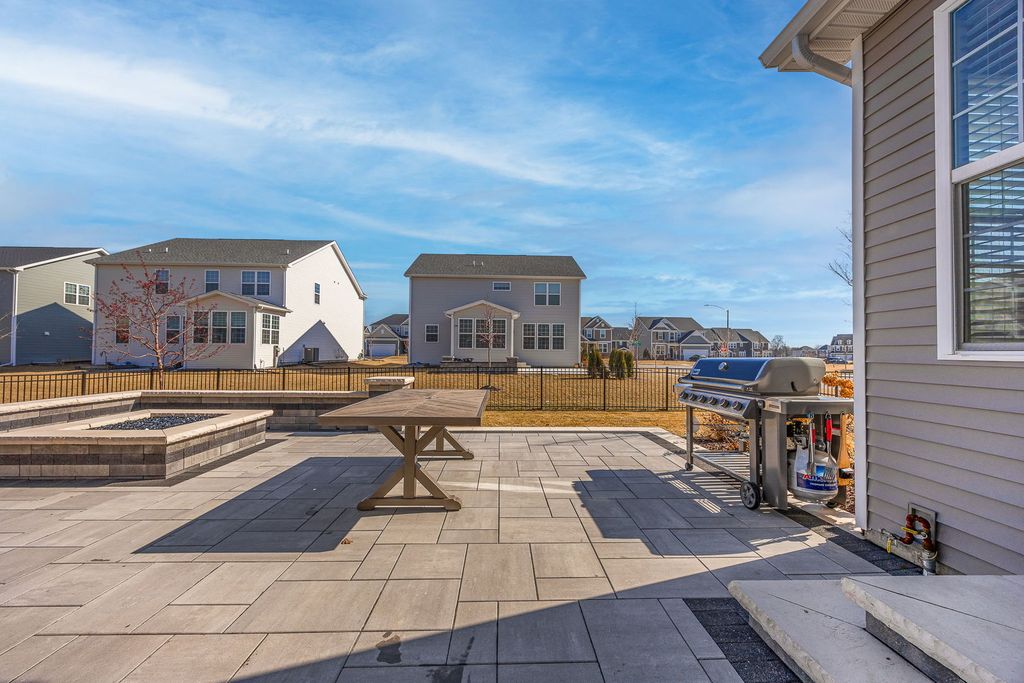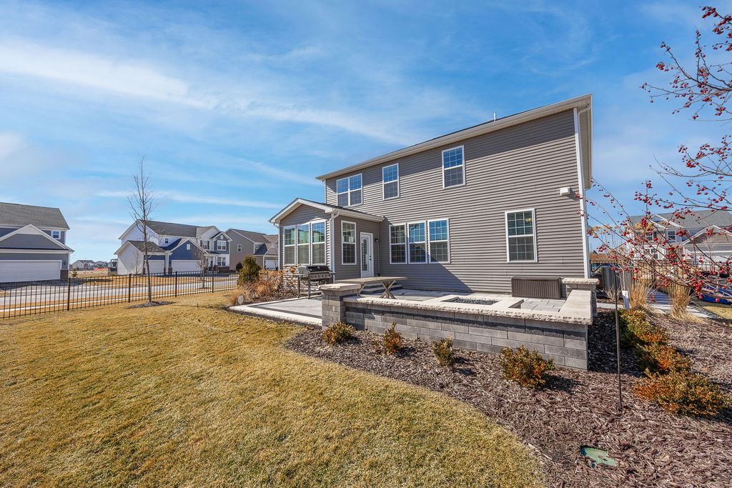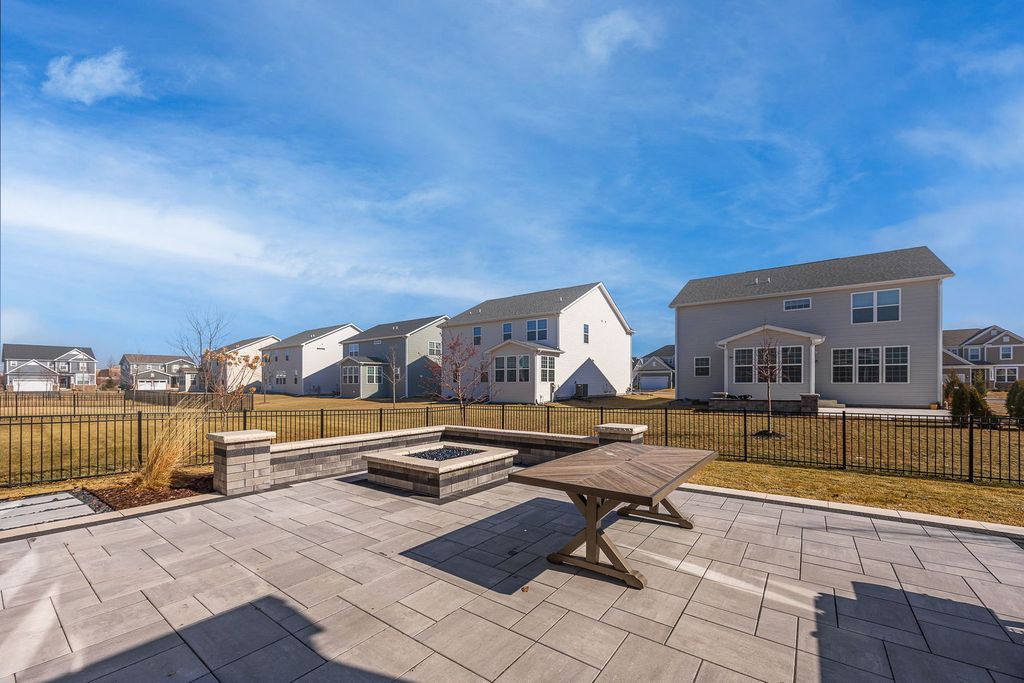 Welcome home to 12751 S Grace Ln in the highly sought-after Bronk Farm Subdivision in Plainfield! This beautifully upgraded 4-bedroom, 2.5-bath home with a sunroom and versatile first-floor bonus room truly checks every box - and then some! Situated on a large east/west-facing corner lot, this home is flooded with natural light from sunrise to sunset and showcases exceptional curb appeal from the moment you arrive. Step inside and immediately notice the stunning windows adorned with custom sunburst shutters throughout the first floor. The dining room is perfectly positioned at the front of the home, offering a welcoming first impression and flowing seamlessly into the open-concept kitchen - a true showstopper! Designed for both everyday living and entertaining, the kitchen features a Built-In Kitchen Package including a wall oven, microwave with trim kit, 36" cooktop, pre-wired 220 outlet in cabinet, 36" wall-mounted range hood, and full-depth refrigerator. With ample countertop space and top-tier functional upgrades throughout, no detail was overlooked. Just off the kitchen, the sunroom provides the perfect retreat to relax, unwind, or showcase your indoor plants, while the kitchen opens directly to the inviting family room for effortless gatherings. The main level also offers incredible flexibility with a first-floor bonus room that can serve as a private office or easily convert to a bedroom. An additional office nook with built-in countertop space creates the ideal homework station or secondary workspace. The thoughtful layout offers both function and versatility for today's lifestyle needs! Upstairs, you'll find four spacious bedrooms - with large walk-in closets - along with a generous loft area that provides additional living space. The primary suite is a true retreat, featuring an upgraded owner's sitting area that feels tranquil and luxurious. The spa-like primary bath offers a walk-in shower and dual vanity, creating a serene space to start and end your day. Step outside to your professionally landscaped backyard oasis! The expansive yard features a stunning Unilock patio with seating wall and built-in lighting, a natural gas firepit, and a natural gas rough-in ready for a future built-in grill - perfect for summer entertaining. A sprinkler system and fully fenced yard add convenience and peace of mind. Summers here will be unforgettable! All of this located within a clubhouse and pool community and in the top-rated Plainfield North High School district. This home is the perfect blend of luxury, functionality, and lifestyle. Do not miss your opportunity to make it yours today! * Property features/ upgrade sheet in documents tab.