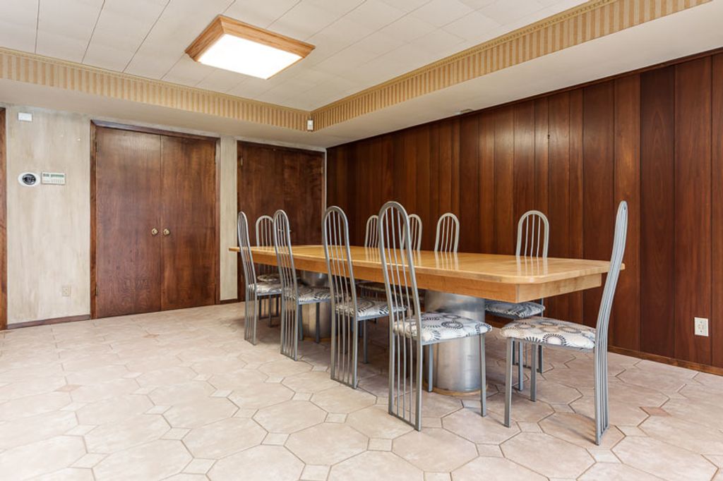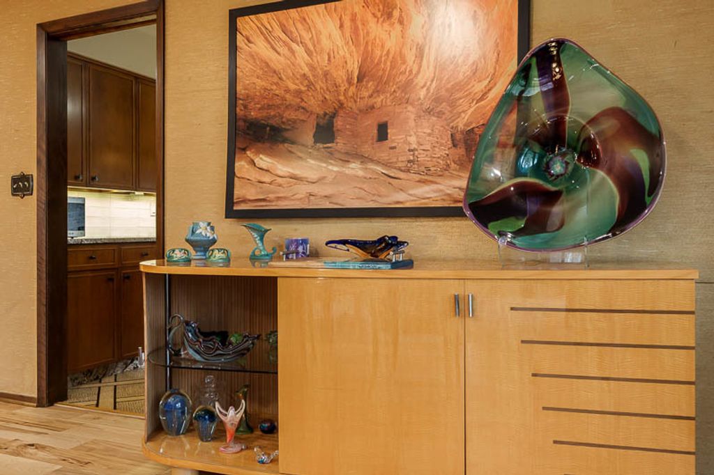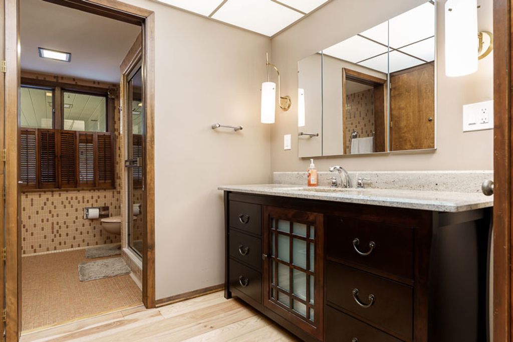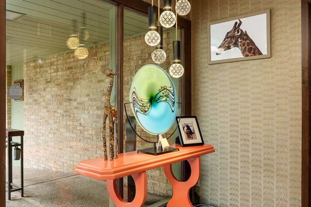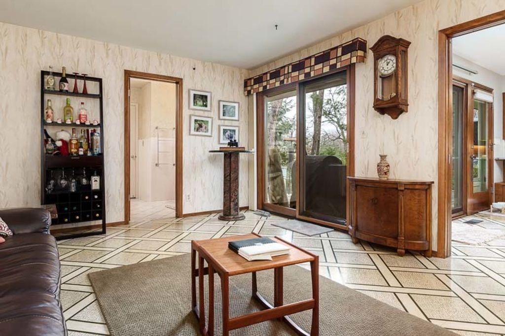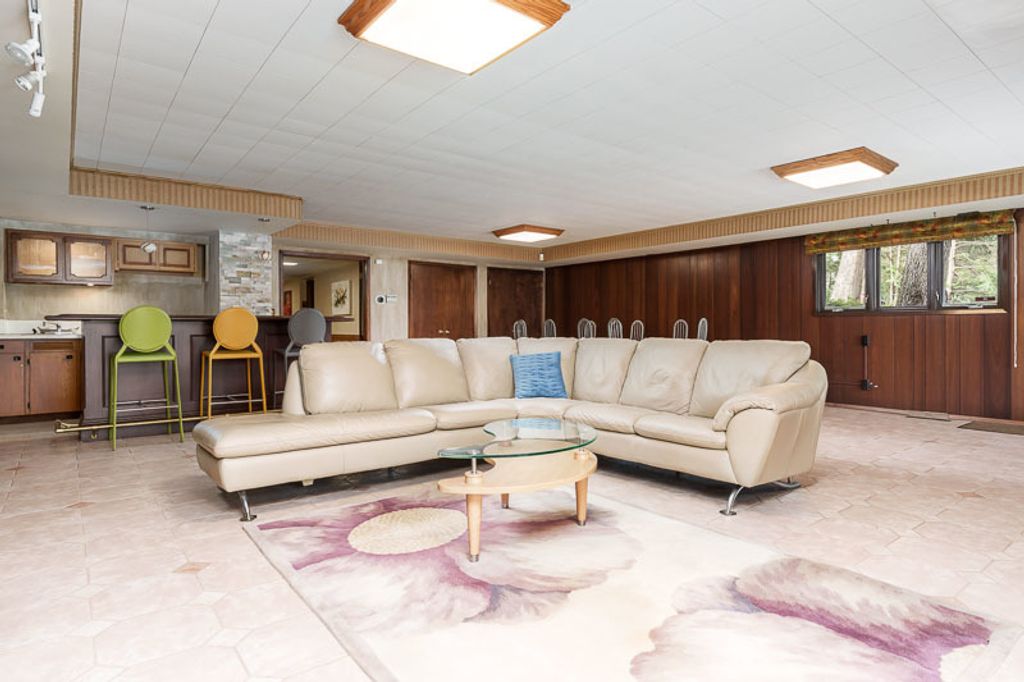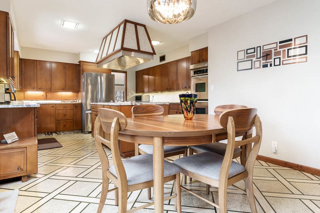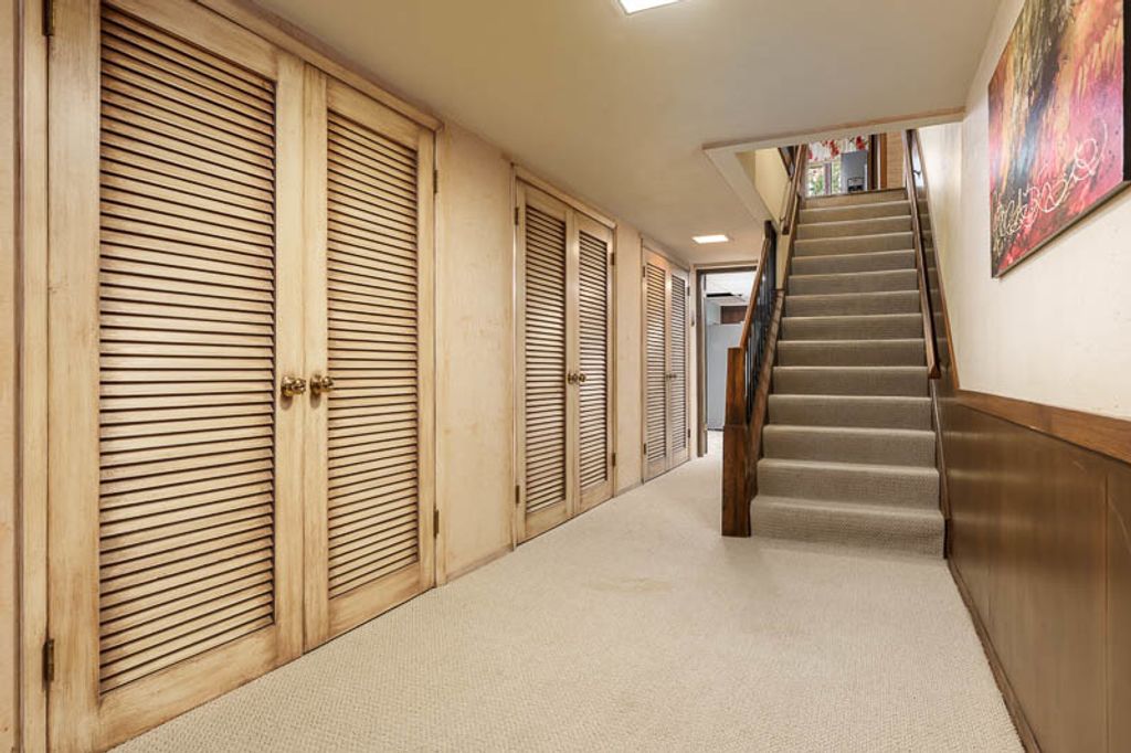 Custom-designed by architect and master craftsman Ed Ware, this exceptional mid-century modern ranch offers timeless design and functional living on a private, wooded cul-de-sac. Featuring 5 bedrooms, 4.5 bathrooms, and a 2+ car garage, this home blends architectural character with thoughtful updates. The spacious eat-in kitchen is equipped with newer appliances, a center island, and sleek granite countertops-perfect for everyday living and entertaining. The great room is a true centerpiece, showcasing new flooring, a striking walnut storage wall, and expansive windows that bring in natural light and serene outdoor views. The primary suite is ideally situated off the main hallway and great room for convenience and privacy. Near the garage entry, you'll find an oversized laundry room, powder room, and abundant storage space. A separate wing includes three bedrooms and a den, connected by two Jack-and-Jill bathrooms featuring beautifully preserved original vintage tile. The fully finished walkout basement expands the living space with a large great room, wet bar, second kitchen, an additional bedroom with ensuite bath, and a substantial bomb shelter-offering both versatility and peace of mind. Additional highlights include a whole-home Generac generator and a setting that perfectly complements the home's architectural charm. This is a rare opportunity to own a distinctive mid-century modern home with space, character, and privacy.