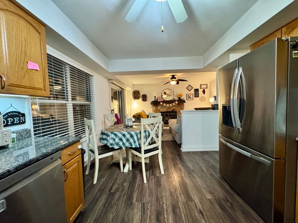 Fabulous 3 bedroom home in Carol Stream with large backyard! Walk in to a spacious front room and dining room. Eat in kitchen with granite countertops, pantry and SS appliances (installed in 2025). Cozy family room right off of the kitchen has a wood burning/gas fireplace. Sliding glass doors in FR lead into the sun room, deck and fenced in yard. Full finished basement complete with office/potential 4th bedroom. Lots of storage room as well! Furnace and AC replaced in 2025. Close walk to local forest preserve.