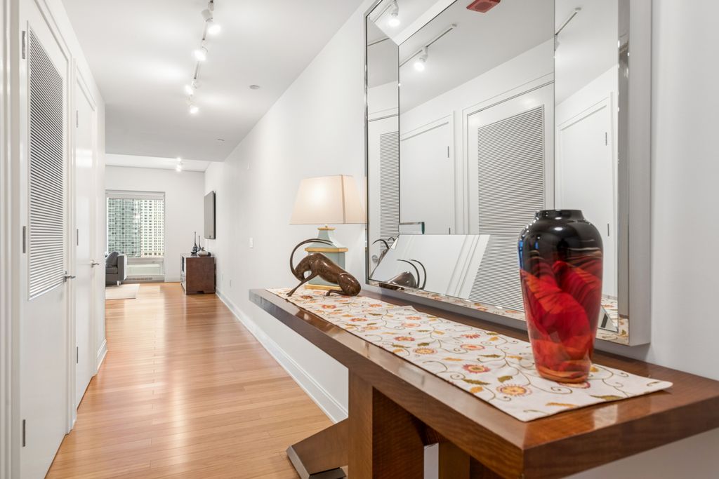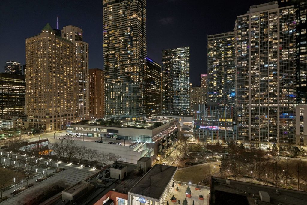 The most pristine and immaculate, popular northwest corner residence offered at the Prized 340 on the Park all season. Residence 906 offers one of the largest one bedroom and one and half bathroom floor plan at 1,244 square feet in Lakeshore East's best building developed by world renowned Related Midwest. Very affordable, including DEEDED, HEATED, UNDERGROUND, PRIVATE PARKING with three levels of entry and exit access, the size of the average two bedroom in the LSE neighborhood, offers generous proportions like a formal entry and gallery foyer for art and photography display, coat closet with custom built-ins, primary bedroom with custom built-out walk-in closet, full size, in unit stackable washer and dryer, ensuite bathroom with dual vanity, soaking tub with perforated air jets, rain shower with additional handheld spray, frameless shower glass, dressed in natural stone. Primary bedroom views of Millennium Park and the Pritzker Pavilion. Beautifully framed architectural and park views from two sides of glass curtain walls. Stunning night time lights. Sumptuous main living space offers an entertainer's haven with open kitchen, contemporary flat panel Snaidero cabinetry with muted stainless steel edging, dull height mosaic backsplash, 1.25" quartz counters, under mount sink, Grohe plumbing fixtures, GE Monogram package appliances, vented culinary hood, oversized kitchen island built to scale for large living, separate dining and office space. Architectural day time views and LSE Park views and night time light show views. This unit has hardwood floors throughout including the bedroom. It has been "very lightly" lived in, by just three "in towners" or pied-e-terre" owners. Unit has never been rented and kept in pristine condition next to near perfection. Window treatments, 9' ceilings, a truly "plug and play home" nothing to do but move in. 340 on the Park's 25th floor amenities level includes a 4,000 square foot gym, 75' two lane indoor lap pool, Sauna, steam rooms, locker rooms, whirlpool, sun terrace, Winter garden/hospitality room, caterer's kitchen, two gas grills, activity seating, tables and lounges, private dining and conference room. Outdoor pet relief area and dry cleaners, access to pedway. Enjoy the Lakeshore East Park, closed in dog park, playgrounds to the north and south of the building. Easy access to waterfront, Navy Pier and Michigan Ave. Private Underground garage entrance and exit from upper, middle and lower Randolph. 24 hour door staff, onsite management, maintenance and engineering staff. Garage parking included, a $50,000 value addition. Courtesy guest parking program including overnight. This home will not disappoint even the most selective home buyers.