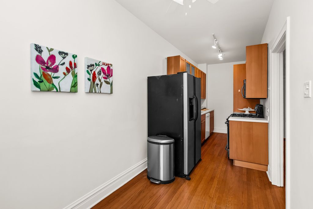 Charming one-bedroom, one-bathroom corner co-op in a beautiful vintage landmark building at The Rookwood. This unit features an inviting entry hall that opens to a spacious, light-filled living room with west- and north-facing windows. The galley kitchen is well-appointed with 42-inch maple cabinetry, granite countertops, stainless steel gas range and refrigerator, microwave, and a newer dishwasher, and flows seamlessly into a bright breakfast room. The generously sized bedroom includes two closets, while hardwood floors and high ceilings throughout enhance the home's timeless appeal. Residents enjoy access to a shared English garden and on-site laundry, completing this classic Evanston offering in an unbeatable location. Ideally located just steps from the Noyes "L" station, Northwestern University, Lake Michigan, and the shops, grocery store, and arts venues of downtown Evanston, this home offers both character and convenience.