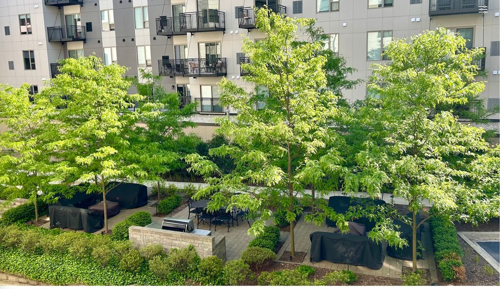 Elevated living meets effortless style in this sleek, contemporary condo located in the heart of Downers Grove. At less than ten years old, this residence offers an unbeatable "center-of-everything" location. Step inside to a bright, open-concept floor plan. Quartz countertops, 42" white cabinets, stainless steel appliances, and an expansive island highlight thoughtful design choices. Warm 5" engineered flooring flows throughout the spacious unit that features 8-foot tall doorways and 9-foot tall ceilings. The primary bedroom has a private bathroom with double vanity and expansive walk-in closet. From the balcony, enjoy the view of the courtyard trees that provide a beautiful, leafy summer backdrop. Building features include deeded parking space in a secure, heated parking garage. Enjoy a workout in the fitness center, host an event in the flex party room that includes a kitchen area, have a seat by the lobby fireplace, and catch a game on the wall-mounted tv. Courtyard features gas grill, fire pits, social seating, and a dog-walk area. Living here means the best of Downers Grove is your backyard. Steps from the Metra, downtown restaurants, shops, historic theater, and even the Saturday farmer's market. Highly rated Downers Grove Schools. This unit is perfect for those seeking a turnkey, low-maintenance lifestyle. MULTIPLE OFFERS RECEIVED. Calling for Highest and Best by Noon Saturday April 11th.