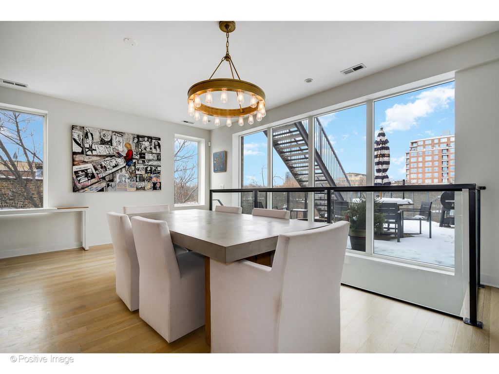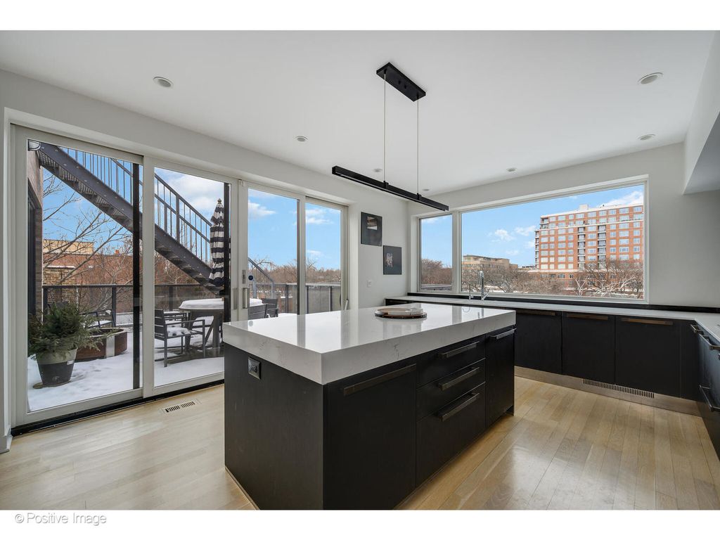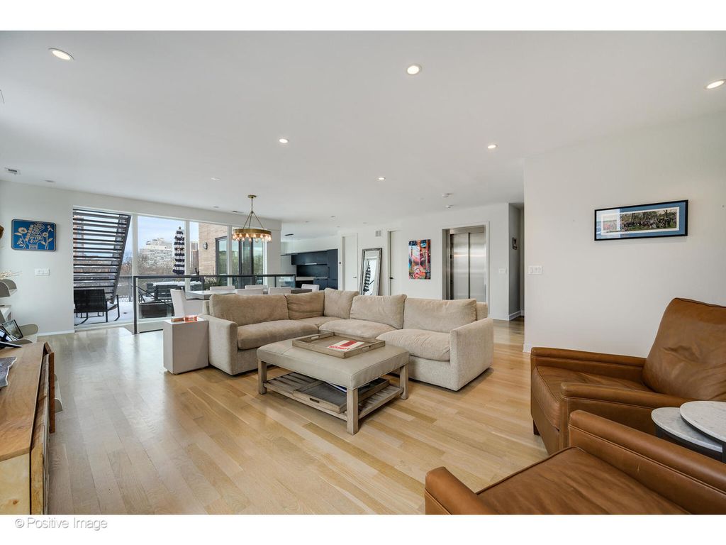 Set in an absolute A+ Lincoln Park location, this duplex-up penthouse is located in a coveted elevator building on a quiet, tree-lined street. Occupying the entire top floor, the residence offers rare 360-degree city views and exceptional natural light throughout. Designed with a refined modern aesthetic, this one-of-a-kind home features expansive open-concept interiors and multiple private outdoor spaces, creating a seamless indoor-outdoor living experience. As the only residence on the floor, the home provides an uncommon level of privacy, paired with skyline views from every exposure. The thoughtfully designed layout is both expansive and intentional, centered around a private north-facing terrace that flows directly from the living room, dining area, and kitchen-ideal for everyday living and entertaining. A dedicated rooftop deck is the most sensational deck you will see and offers an additional outdoor retreat with panoramic city views. The primary suite is privately positioned on the upper level, while three additional bedrooms are located on the lower level, offering ideal separation of living and sleeping spaces. The building's elevator provides direct access to both levels of the residence, enhancing both convenience and exclusivity. This penthouse delivers a rare combination of light, privacy, elevator access, and outdoor living in one of Chicago's most desirable neighborhoods, just steps from top-rated Lincoln Park schools, Oz Park, and some of the area's best dining and lifestyle amenities.