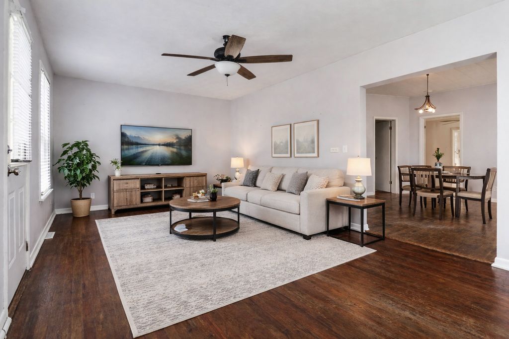 Check out this 2 bedroom, 1 bath home with detached oversize two car garage. Spacious kitchen area. Cozy family room. Fenced yard area for kids and pets!