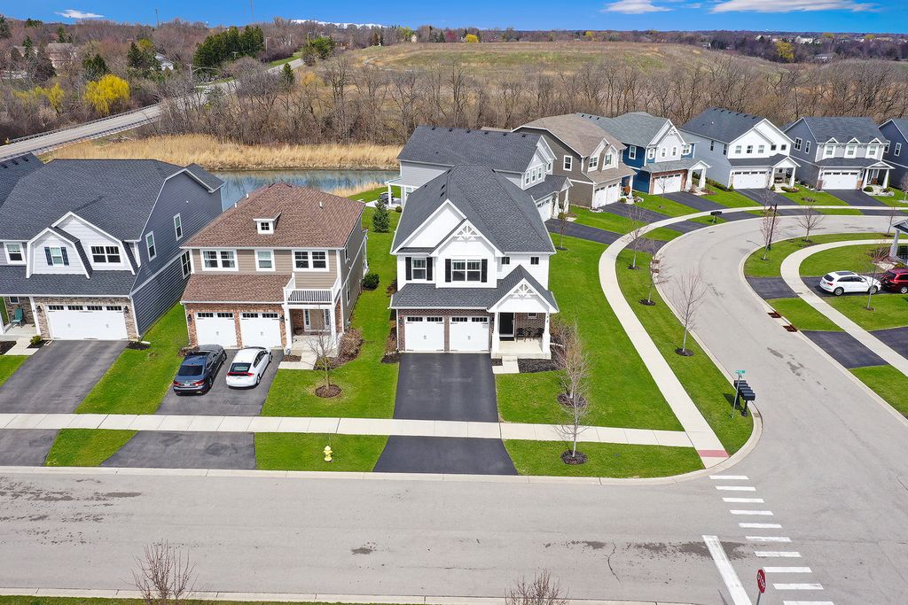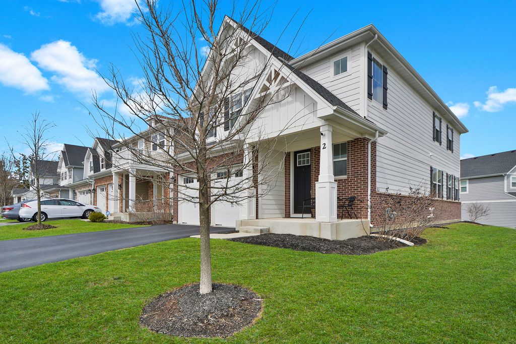 Rarely available in desirable The Villas at the Commons in Hawthorn Woods. Perched up high and on a distinctive corner you'll discover this exceptional newer construction home built in 2020, offering 4 bedrooms, 2.5 bathrooms and approximately 2,623 square feet of thoughtfully designed living space. The home showcases a beautifully designed kitchen featuring distinctive blue cabinetry, a gray granite backsplash, elegant gold finishes and stylish West Elm pendant lighting that create a sophisticated focal point for the space. The open layout flows effortlessly into the main living areas and a bright sunroom, providing a warm and inviting setting filled with natural light. Upstairs, a spacious loft offers flexible living space ideal for a home office, lounge or additional gathering area. The home also includes a full basement ready for your personalization. This beautifully maintained residence presents an outstanding opportunity to own a newer home with stylish finishes and modern features in Hawthorn Woods.