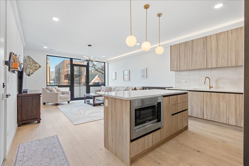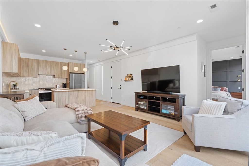 Welcome to this sunny & spacious 2024 construction 3 bed 2 bath extra wide unit! This home features modern luxurious finishes throughout and is in the heart of East Humboldt Park / Ukrainian Village. As you enter the home you are met with an expansive open-concept floorplan w/ Chef's Kitchen featuring custom cabinetry, quartz countertops w/ island, SS appliances & more. The living room is flooded with natural light and flows right out into a massive front balcony spanning the entire width of the building. Primary suite features a modern bathroom w/ double sink, large shower w/ rain showerhead and walk in closet. The unit also features 2 more bedrooms and a guest bathroom along w/ in unit laundry and hardwood flooring throughout. One garage parking space and one storage unit included in price. All of this is conveniently located walking distance to the 606, restaurants, shopping, coffee shops and everything Chicago Avenue and Division have to offer along with easy access to 90/94, Metra, and the bus!