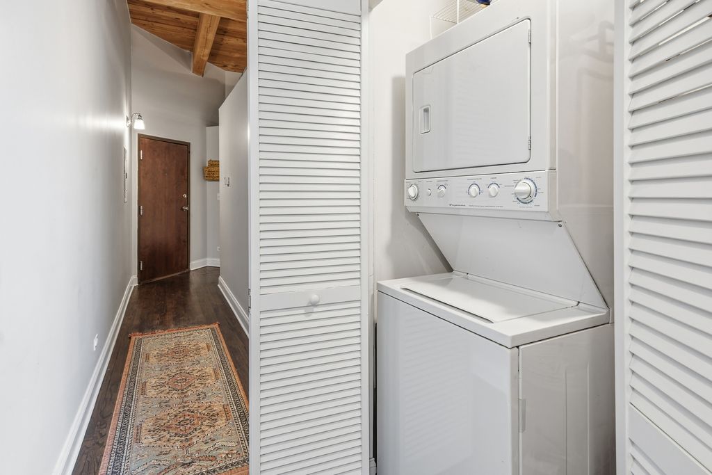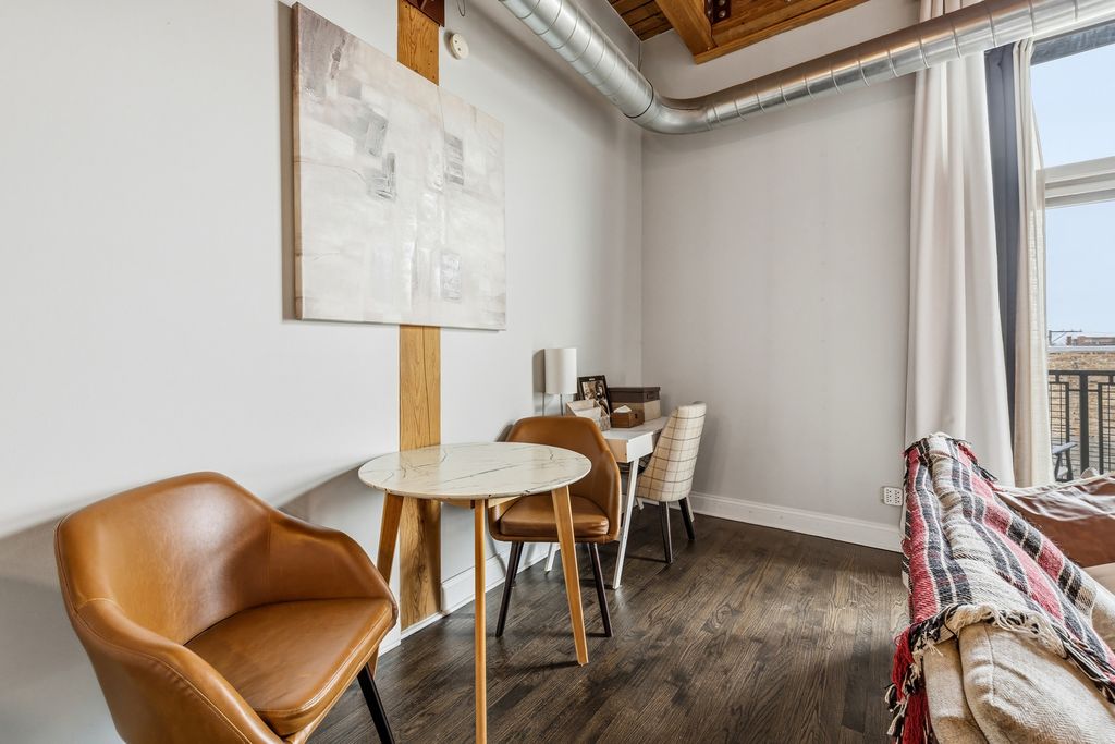 True timber loft in a magical West Town location at the all new-up-and-coming Grand Avenue Corridor. Find tons of new businesses and entrepeneurs lining the street from Ashland to Western. Boutique loft building with secured butterflymx entry. Take the elevator to the third floor and find a perfectly planned one bedroom space. All hardwood floors and coat closet at the entry. Full bathroom has a soaker tub and shower combination. Large bedroom with wall to wall closets. The kitchen features bar seating, custom cabinetry, granite counters and stainless steel appliances. All open concept, the living and dining is very nicely attached to the kitchen. A glass sliding door takes you out to an attached private balcony with northern exposure. You will be dazzled by the attached garage parking with storage space option.
