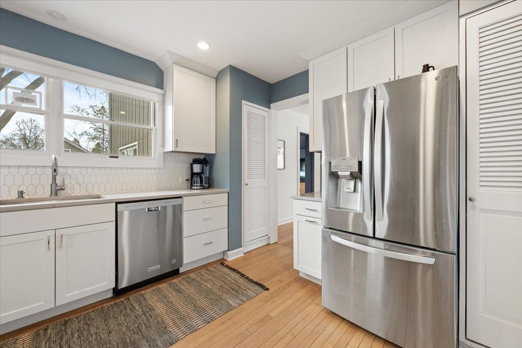 Beautifully expanded and thoughtfully renovated 4-bedroom 2.5 bath Tudor set on one of Highland Park's most desirable blocks. Situated on an oversized 50x200 lot, this exceptional property also features a charming and versatile coach house-perfect for guests, an in-law arrangement, studio, or private office. This East Highland Park gem has seen over $80K in recent upgrades since 2021, including many new windows that fill the home with natural light. The inviting main level features an updated kitchen with 36-inch shaker cabinetry, quartz countertops, and stainless steel appliances. A sun-drenched living room with a classic fireplace flows effortlessly into a bright sunroom-ideal for a home office, workout space, or serene retreat. The spacious formal dining room opens to a large family room with floor-to-ceiling built-ins, creating the perfect setting for both everyday living and entertaining. Upstairs, you'll find four generously sized bedrooms, including an expansive primary suite with floor-to-ceiling windows and a beautifully updated bath with designer finishes. Step outside to enjoy a fully redone exterior patio, complete with a pergola and professionally enhanced landscaping-offering a private outdoor oasis for relaxing or entertaining. Additional recent updates include a new LG refrigerator and washer/dryer (2024), adding modern convenience. All of this in an unbeatable location-just steps to downtown Highland Park, shopping, dining, the library, Metra train, beach, bike trails, and the Ravinia Festival. A truly special home in an incredible neighborhood-this is an opportunity not to be missed.