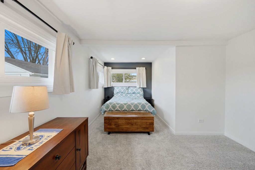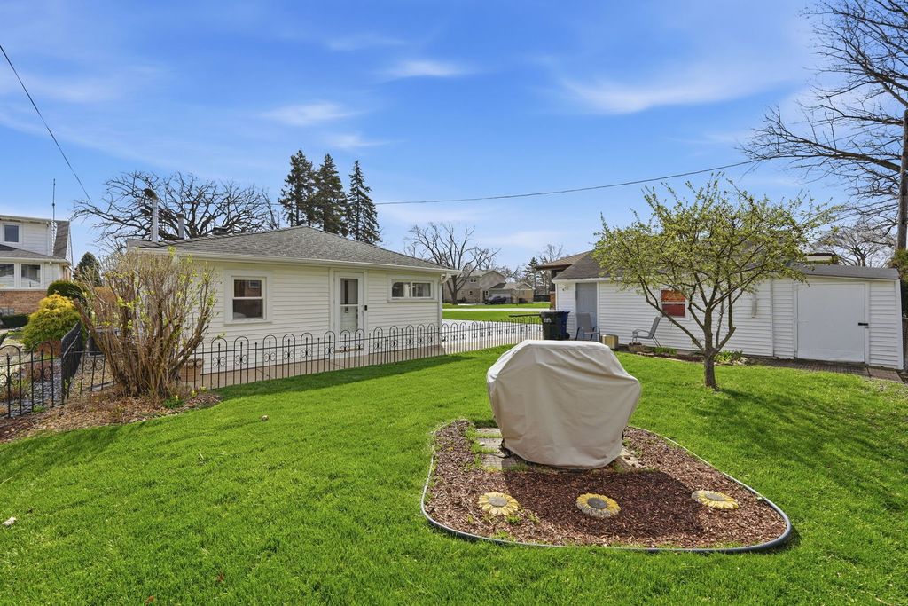 Amazing! Very rare spacious ranch home situated on 1/4 acre in a Prime Elmwood Park Location. Tree lined driveway takes to main entrance of this sprawling ranch! Walk into large Sunroom with insulated windows that can accommodate large patio furniture and table. Sunroom is equipped with French doors that access family room and patio door to go to outdoor patio! The home features 3 bedrooms, 1.5 baths. Large retro Kitchen that has custom solid wood cabinets with a ton of counter space. Kitchen has all stainless-steel appliances. Home has a rare huge family room with gas fireplace. Family room has large windows that have a great view if this block and can see golf course. Bedrooms are good size and feature built-ins. So many updates Air conditioning condenser and evaporator (2023), Tankless gas hot water heater (2023) Tankless gas hot water heater (2023), 200 amp electrical panel with 100 amp sub-panel in garage (2023), Gas line also ran to garage - not currently hooked up (2023), Wired smoke and CO detectors throughout the home (2023), Solar panels (2024), Electric vehicle charger in garage (2024)!!! Come and see this turn key home in a great neighborhood! This property is a true gem and offers ample opportunity to add value and make it your own. Don't miss out on the chance to own this one of a kind ranch on a large piece of property!