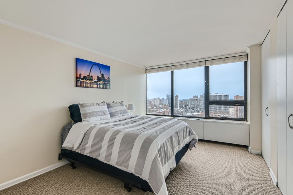 Enjoy stunning lake and city views from this high-floor 1-bedroom residence. The open-concept kitchen features 42" white cabinetry, a new stainless steel dishwasher, and generous counter space-perfect for both everyday living and entertaining. The home is enhanced with custom blinds and elegant crown molding throughout, adding a refined touch to the space. The spacious layout offers comfort and style, ideal for modern city living. Located in a full-amenity building, residents enjoy 24-hour door staff, an outdoor pool, fitness center, party room, and tennis courts. Monthly assessments conveniently include heat, air conditioning, and cable, providing both value and ease. Walk to the Red line, lakefront, golf course, Whole Foods, Wrigley Field. A perfect combination of breathtaking views, thoughtful upgrades, and exceptional amenities.