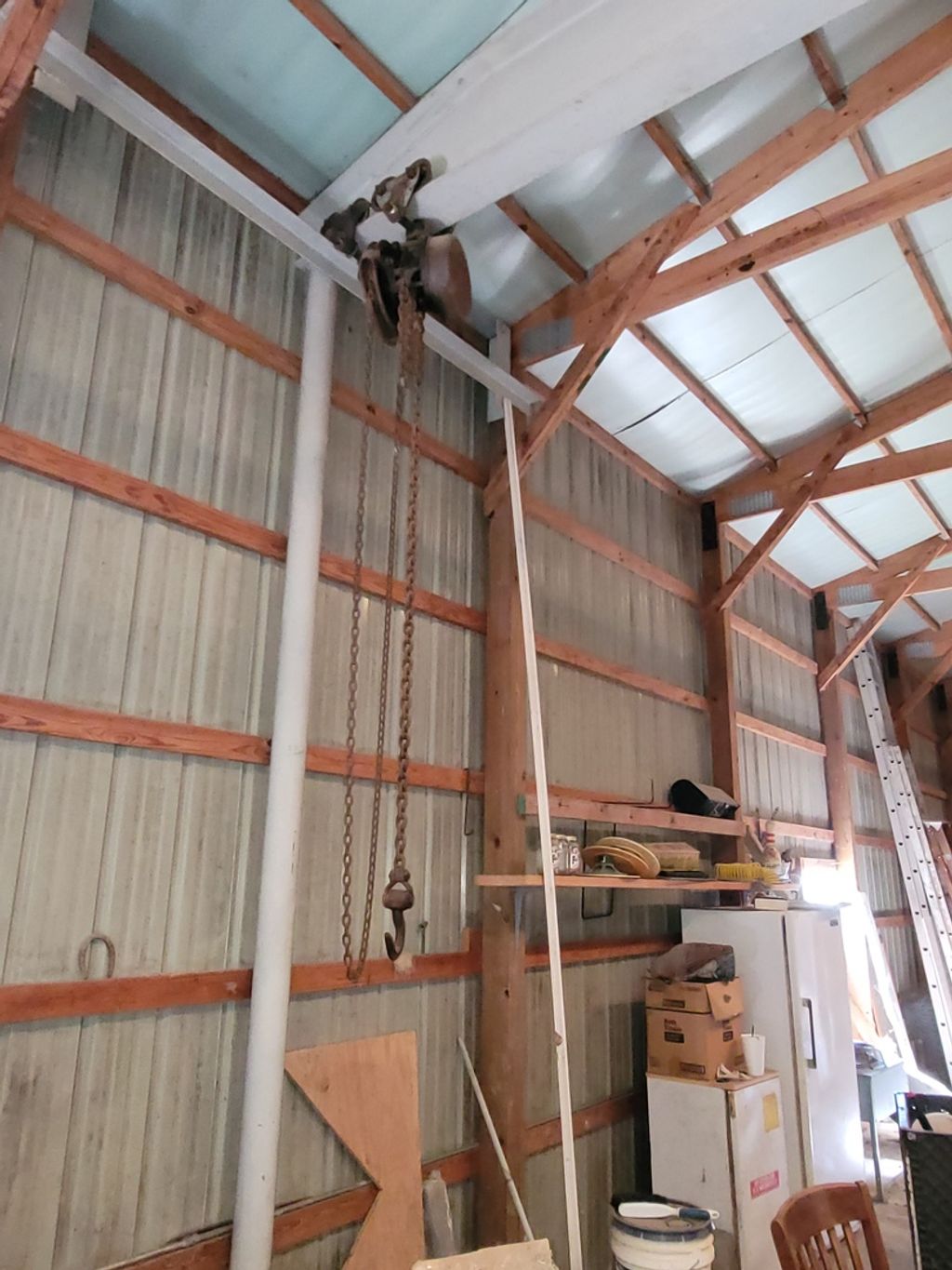 6.87 ACRESS! The property's powerful feature is the massive 80x36 foot metal pole barn. This structure is built for work, with concrete floors and immense storage capacity for equipment, vehicles, and tools. Heavy-duty overhead gantry crane and hoist system for incredible lifting power and versatility for restorations, automotive work, or handling heavy machinery. 12' sliding door. The 1919 farmhouse retains its charming exterior. The interior, while requiring renovation shown by the current photos, it does have some upgrades such as replacement vinyl windows, walk-in tub and tankless water heater. With some imagination and hard work, this classic structure can be revealed and transformed into a beautiful home. The property consists of grassy rolling fields, mature trees, and small pond. The acreage creates possibilities for expanding gardens, raising animals, building additional outbuildings, or simply enjoying the privacy and space of your own country estate. If you are seeking a blend of significant functional workspace, expansive land, and the opportunity to restore a historic farmhouse to its original splendor, this property offers the perfect foundation. Bring your tools, your vision, and explore the incredible possibilities that await. This is an Estate Sale, "AS IS - AS Shown". Cash/Conventional. Heirs have never resided on premises.