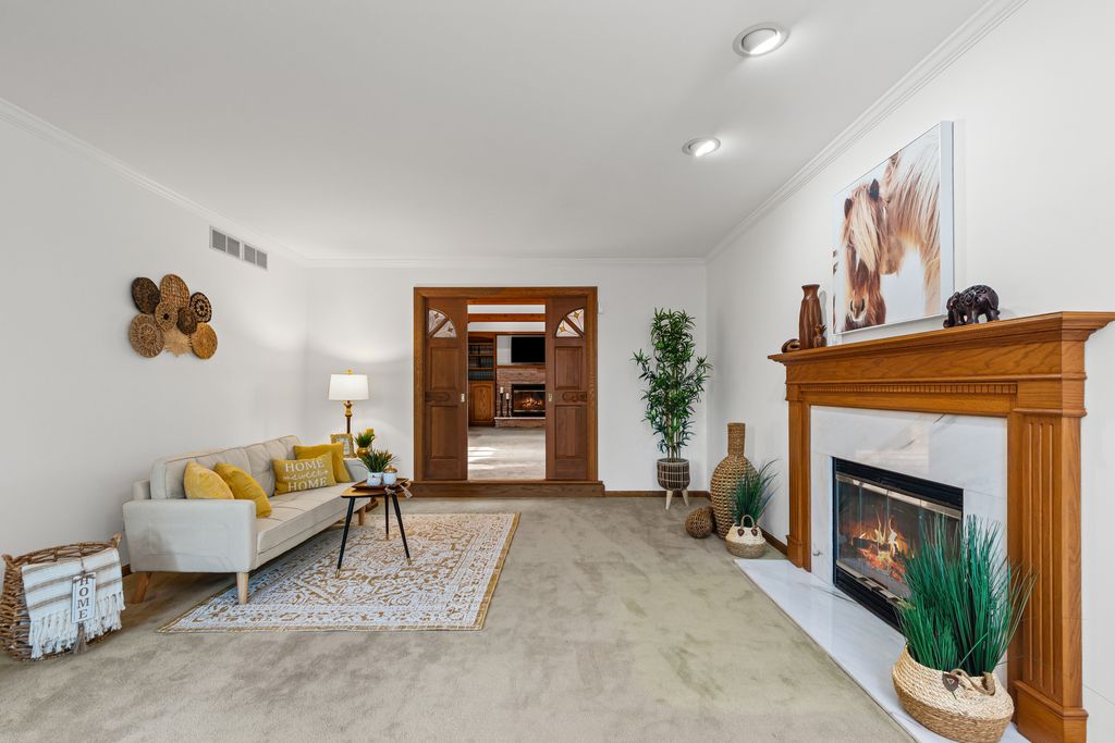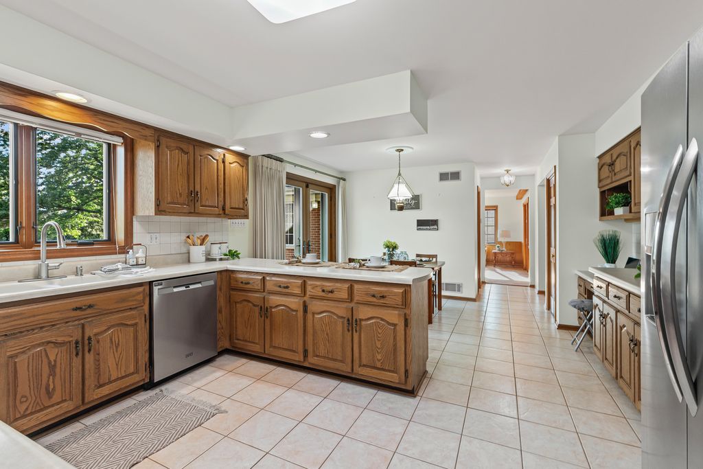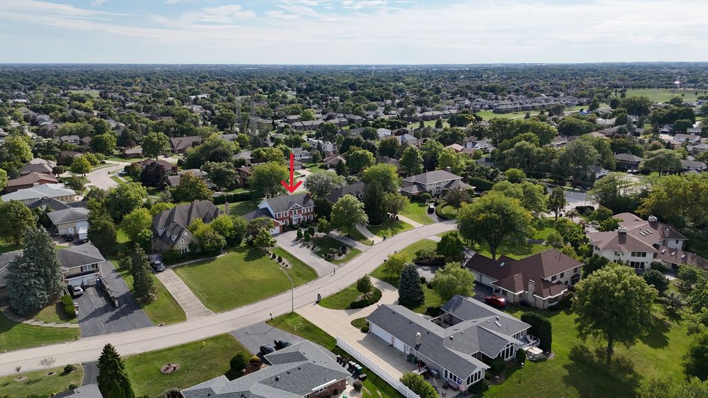 Welcome to this fabulous, custom built home in the Pluskota Subdivision of Orland Park. A rare offering, this home has been loved and cared for by one family since its construction, and sits on a high point, with great views of its surroundings - on the clear day you should be able to see Chicago skyline! This property features 5 beds, office, 3 full+2 half baths, a fully finished basement and an oversized 2 car garage. The entrance welcomes you with a bright, 2-story foyer and a gleaming staircase leading to the second floor. The main floor offers multiple spaces for family living and entertaining. The living and family room is divided by a beautifully designed pocket doors, and each room features a picturesque wood burning fireplace. The family room has a wet bar and features a beamed and vaulted ceiling. The living room floor has been reinforced to accommodate the weight of a grand piano. The large dining room, detailed with durable and elegant teak parquet flooring, offers space for any size of holiday/family gatherings. The kitchen is every chef's dream, with plenty of solid hardwood cabinets and counterspace, with new, stainless steel appliances and 2 pantry closets. A spacious breakfast table area will lead you through two oversized, newly installed Pella French doors to a sunny patio and over half acre yard, lined by mature trees & an equipped in-lawn sprinkler system. The hallway east of the kitchen leads to the laundry, full bathroom, and a quiet office, which may serve as guest private quarters, or an in-law arrangement. One area you will be sure to love, is the 2nd floor master suite with its deluxe spa-like bathroom, vanity nook, large walk-in closet and generously sized, bright master bedroom. Three additional bedrooms, as well as full hallway bathroom, located on the west side , completes the 2nd level. The fully finished basement will surprise you with an additional recreational family area, party room with extra cabinets, sink and counterspace for a potential kitchenette, half bathroom, 5th bedroom, wine cellar & extra storage room. The pride of ownership shines through every detail of this home: from double-stud walls (extra insulation), dual heating and cooling (energy efficiency), to incredible woodwork through the house! This home is all electric. There is gas line available just next door. Heating and cooling is provided by 2 newly installed, energy efficient and environmentally friendly heat pumps. This well maintained home is located in a top rated, award-winning school district, close to all kinds of dining, shopping, hiking/biking trails, and more!