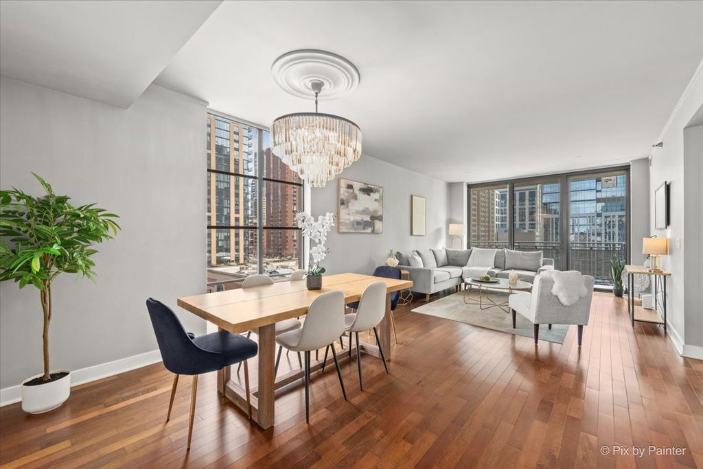 Stunning 3BR/2BA Condo in the Heart of River North - A Rare Urban Oasis Experience the pinnacle of city living in this beautifully designed 3-bedroom, 2-bathroom condo in The Royalle-an intimate boutique building in the heart of vibrant River North. Unit 705 offers a seamless blend of luxury, comfort, and convenience, with floor-to-ceiling windows that flood the space with natural light and showcase breathtaking cityscape views. This quiet corner unit boasts an open-concept floor plan that effortlessly connects the living and dining areas-ideal for both entertaining and everyday relaxation. Step out onto the east-facing balcony for your morning coffee or an evening glass of wine while soaking in unobstructed skyline views that capture the essence of city living. Inside, the condo is finished with rich hardwood floors throughout, adding warmth and elegance. The chef's kitchen features sleek, updated finishes-perfect for the home cook and entertainer alike. The thoughtfully designed layout includes ample closet space to keep your living environment organized and clutter-free, while the in-unit washer and dryer add everyday convenience. All three bedrooms are bright and inviting, with huge windows that offer stunning views and fill each room with natural light. The primary suite is a tranquil retreat, featuring generous closet space and a spa-like ensuite bath. Additional highlights include floor-to-ceiling windows for abundant natural light and panoramic city views, a private balcony with unbeatable skyline views, hardwood floors throughout, and ample closet space with additional storage. The in-unit washer and dryer add a layer of convenience to your daily routine. Located steps from the Brown and Red Line stops and surrounded by the best of River North-including Whole Foods, Lifetime Fitness, top-rated restaurants, shopping, and nightlife-this condo offers unbeatable access to everything the city has to offer. Heated garage parking available for an additional $35,000. Don't miss this opportunity to own a slice of urban luxury in one of Chicago's most sought-after neighborhoods. Schedule your showing today!