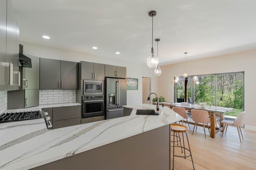 One-owner contemporary gem in the desirable Trails @ Timber Oaks! Looking for a beautifully updated home with no backyard neighbors? This could be it! Step inside of this gorgeous custom-built property, thoughtfully built by Kent Eigsti, into a spacious open floorplan with 9 ft ceilings throughout. The kitchen is the heart of the home with custom cabinets, soft close drawers, unique Cambria Quartz countertops, a walk-in pantry, & upgraded Matte finish appliances, including both a gas & electric stove! The kitchen is open to the living area, which features beautiful hardwood flooring, an electric Heat N Glo fireplace, and modern light fixtures. The primary suite is everyone's dream with a large bedroom complete w/Hunter Douglas black-out shades, a walk-in closet, and the Primary bathroom has a walk-in tiled shower, rainhead showerhead, soaking tub, dual vanities, and a private toilet area. On the main floor you'll also find two other good-sized bedrooms, ample closet space, a laundry/mudroom area right off the garage, and a trendy half bathroom. The basement has been mostly finished with luxury vinyl plank flooring, a 4th bedroom, a bonus/office space, and another area perfect for workout equipment. There is also plenty of storage space in the utility room, complete with a tankless water heater, rented water softener, and sump pump. Out back you'll find a lovely covered patio with a view of the woods, and occasional deer pass through the backyard. Andersen windows throughout provide TONS of natural light. This subdivision is even more desirable as it is just outside the city limits of Morton and features nature trails for walking/hiking. Come take a look at this gorgeous home before it slips away!