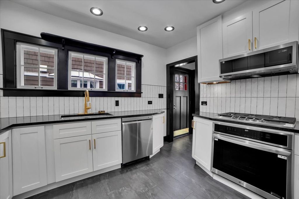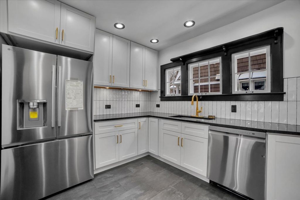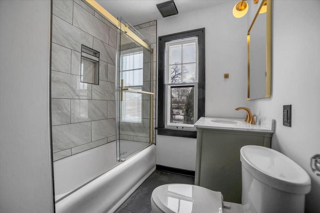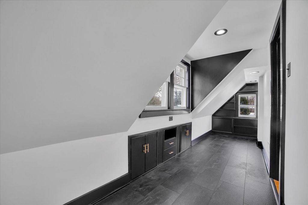 Step into timeless elegance at 4941 Montgomery Avenue, a beautifully restored 4 Bedroom vintage charmer nestled in the heart of Downers Grove's Downtown and highly sought-after Historic District. This immaculate home seamlessly blends classic character with modern luxury, offering the perfect balance of old-world craftsmanship and contemporary design. From the moment you enter, you're welcomed by a spacious living room featuring stunning original hardwood floors, a striking beamed ceiling, and an inviting wood-burning fireplace with a gorgeous stone surround. An arched entryway leads to a generous dining room ideal for entertaining, while the completely renovated chef's kitchen boasts stainless steel appliances, granite countertops, abundant cabinetry, and exceptional flow for everyday living. Upstairs, you'll find three well-appointed bedrooms, all showcasing original hardwood flooring, along with a full bath and a wide hallway that enhances the home's open feel. A unique bonus room tucked beyond the primary bedroom closet offers endless possibilities-perfect as a playroom, art studio, or creative retreat. The fully finished basement expands your living space with a fourth bedroom, private office, beautifully updated full bath with Large Tile and Glass Shower with double sink vanity, recreation/convenient kitchenette-ideal for related living or guest accommodations. Outside, enjoy a professionally landscaped yard, a spacious deck accessible from the cozy family room, and long Paver Brick Driveway leading to a 2.5-car garage complete with a large loft-perfect for a home office, studio, or additional flex space. Every inch of this home has been thoughtfully updated, featuring luxurious black and gold accents, designer lighting, and expertly crafted wood details throughout. With all major updates completed-including flooring, walls, paint, and fully renovated bathrooms-this home is truly move-in ready. Located just a short walk to the train station, top-rated Downers Grove schools, and the vibrant downtown filled with restaurants, boutiques, and entertainment, this one-of-a-kind property offers an unmatched lifestyle. Come experience the perfect fusion of historic charm and modern sophistication-this exceptional home is not to be missed.