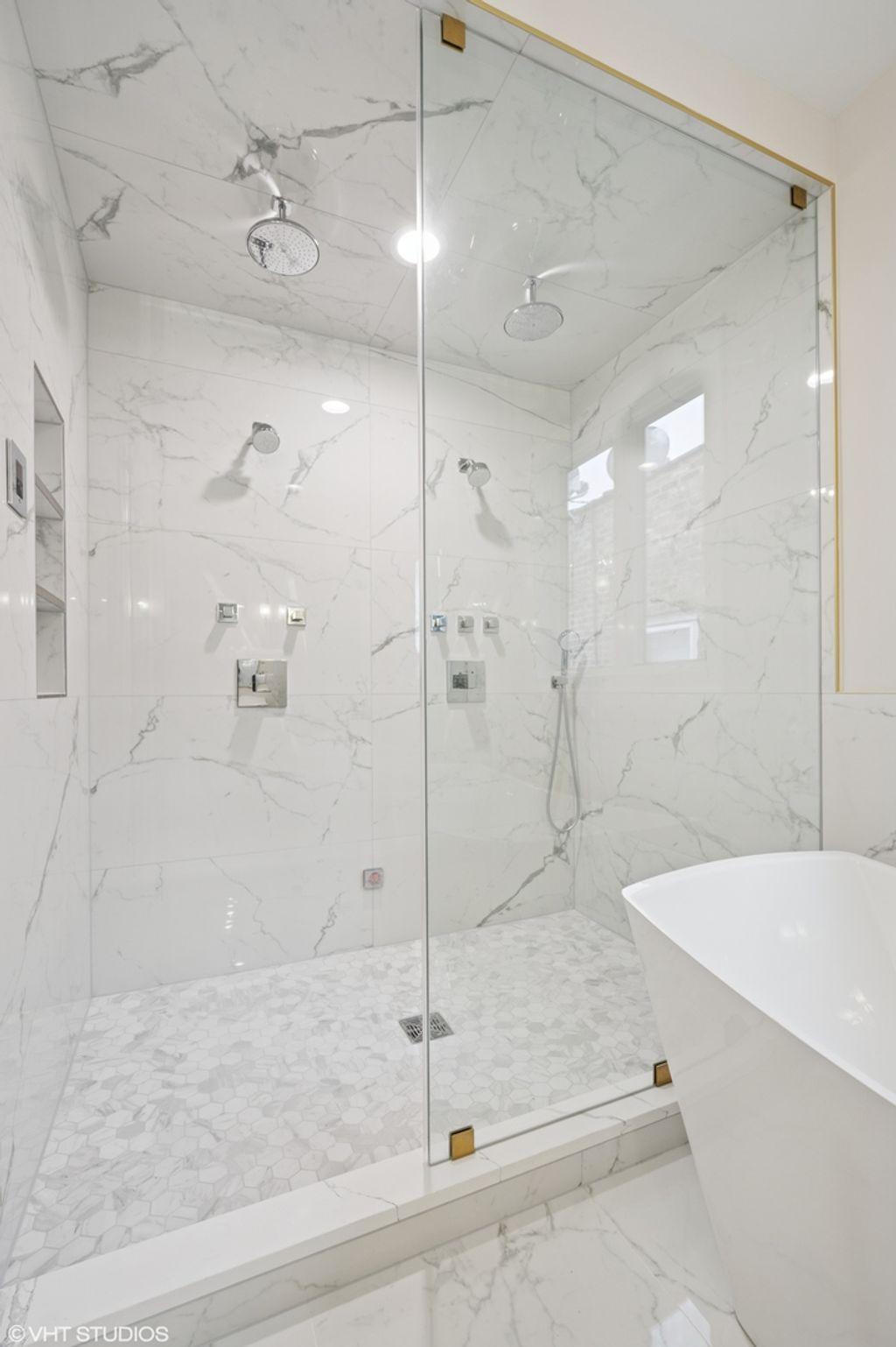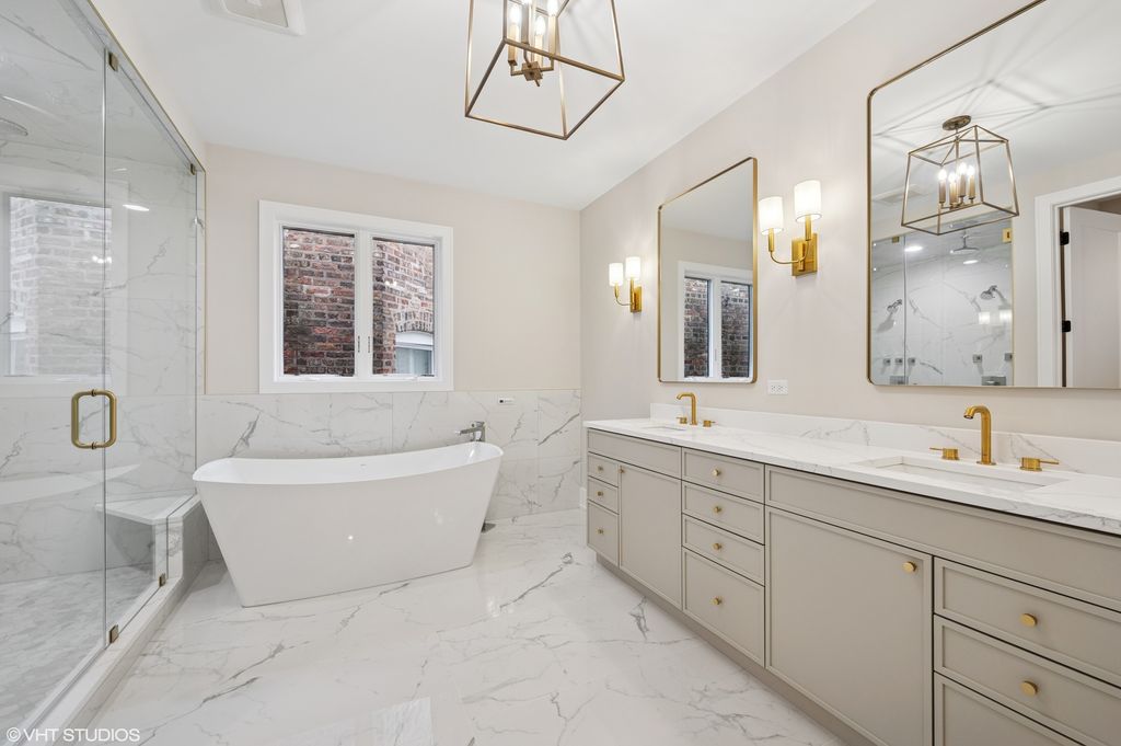30' WIDE LOT | 5,200+ SQ FT | BELL SCHOOL DISTRICT | 6BR/5.2BA | JUST COMPLETED | ROOFTOP DECK + PERGOLA | SNOWMELT STEPS | HEATED 2.5-CAR GARAGE (EV-READY) Stunning North Center new construction in the coveted Bell School District. Set on an extra-wide 30' lot, this light-filled 6BD/5.2BA home offers over 5,200 square feet across three beautifully finished levels. Built by GT Builders, with over 30 years of craftsmanship, the home showcases wide-plank white oak floors, soaring ceilings, custom millwork, oversized windows, designer finishes, and two statement fireplaces. The main level is designed for entertaining and everyday ease, featuring a chef's kitchen with custom cabinetry, dramatic quartzite island, Thermador appliance suite, walk-in pantry, and butler's bar, flowing seamlessly into the family room and backyard. Built-in speakers throughout the main and upper levels provide seamless whole-home sound. Upstairs, the primary suite offers dual walk-in closets and a spa-inspired bath with heated floors, soaking tub, and steam shower. Four bedrooms on one level and upper-level laundry add ideal functionality. The radiant-heated lower level includes an oversized rec room, wet bar, home theater wiring, second laundry, two additional bedrooms, and generous storage. Additional highlights include a rooftop deck with pergola, snowmelt front steps, heated EV-ready 2.5-car garage, smart home automation, and advanced security. Prime location near St. Ben's, parks, dining, and shopping. This home has just been completed and is ready for its next owner. Market time reflects time on market during construction.