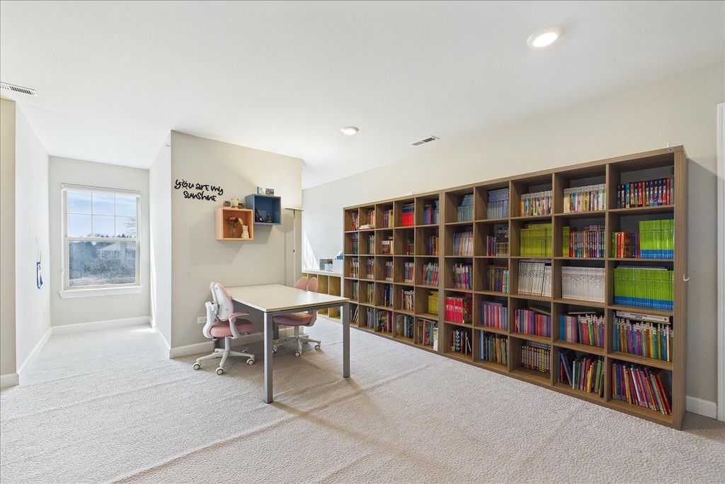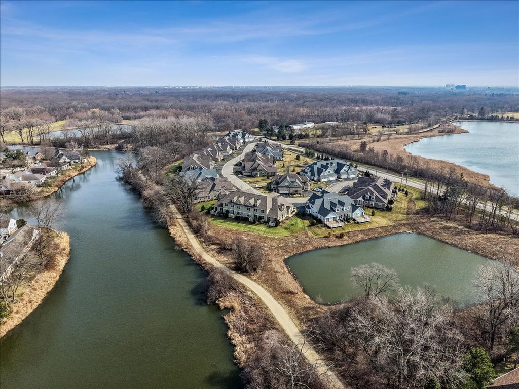 Welcome home to the rare and highly sought-after FIRST FLOOR PRIMARY SUITE. This stunning Lincolnshire Trails townhome is designed for effortless luxury, anchored by a showstopping great room with soaring ceilings and a dramatic floor-to-ceiling fireplace where peaceful water views set the perfect backdrop for cozy evenings in. The great room flows seamlessly into the chef-worthy kitchen, complete with quartz countertops, GE stainless steel appliances, soft-close cabinetry, and a large island perfect for casual dining or elegant entertaining - all while enjoying those same tranquil water views throughout. - The primary bedroom is tucked privately at the rear of the main level with serene water views to wake up to every morning, featuring a spa-inspired bath with dual sinks, an oversized walk-in shower, upgraded tile, and a generous walk-in closet, offering the ultimate in convenience and accessibility for any stage of life. A dedicated study off the foyer adds flexible space for a home office or formal sitting room, while the first-floor laundry doubles as a convenient mudroom upon entering from the attached two-car garage. Upstairs, a sprawling loft offers endless possibilities as a second living area, office, playroom, or media room, accompanied by two spacious bedrooms - each with walk-in closets - and a full hall bath. Located in the award-winning Adlai E. Stevenson High School District 125 and top-rated Districts 102 & 103, with maintenance-free living and unbeatable access to expressways, dining, and shopping, this is Lincolnshire living at its very finest.