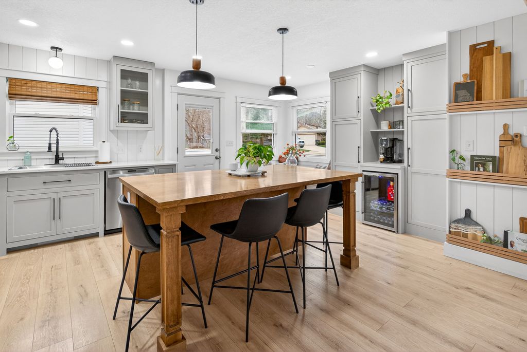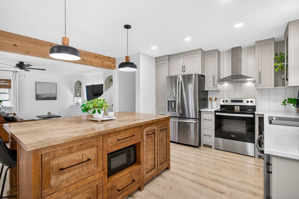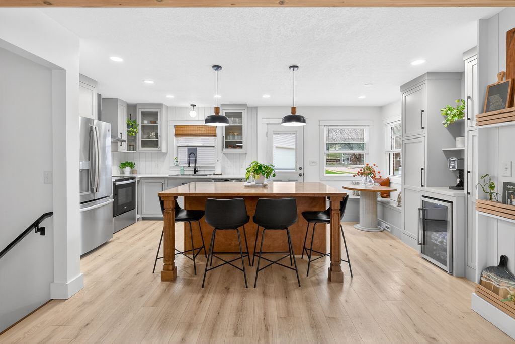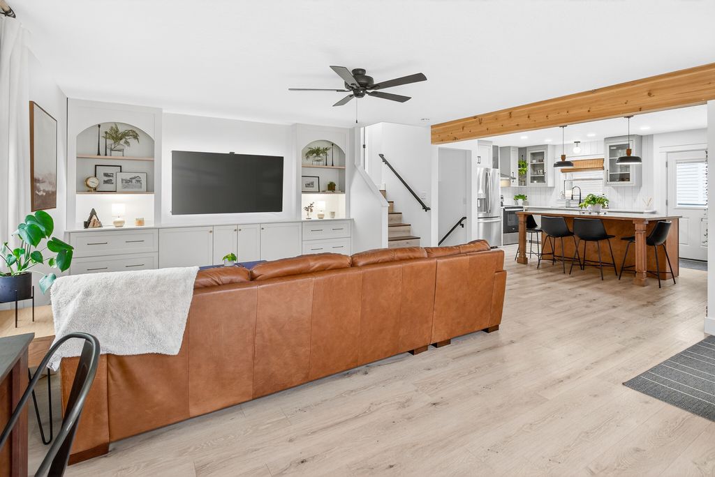 Step into this thoughtfully designed quad-level 3-bedroom, 2-bathroom home that showcases the Modern Traditional style buyers are searching for. The heart of the home is a beautifully redesigned open-concept kitchen that features quartz countertops, modern lighting, a custom-built kitchen island and stainless-steel appliances. The adjacent dining nook provides a cozy space for everyday meals, while built-in cabinetry and a beverage station add both convenience and elevated design. Thoughtfully updated throughout, the home also features all new windows, Luxury Vinyl Plank flooring, new water heater, and a newly poured driveway with concrete work along with a brand-new detached garage built in 2024. Every detail has been carefully considered. From the high-end finishes to the seamless layout, this home offers comfort and style in every space. Schedule your private showing today-this one-of-a-kind home is truly something special.