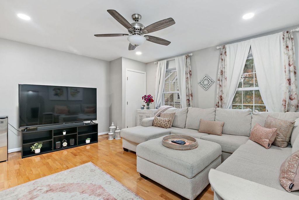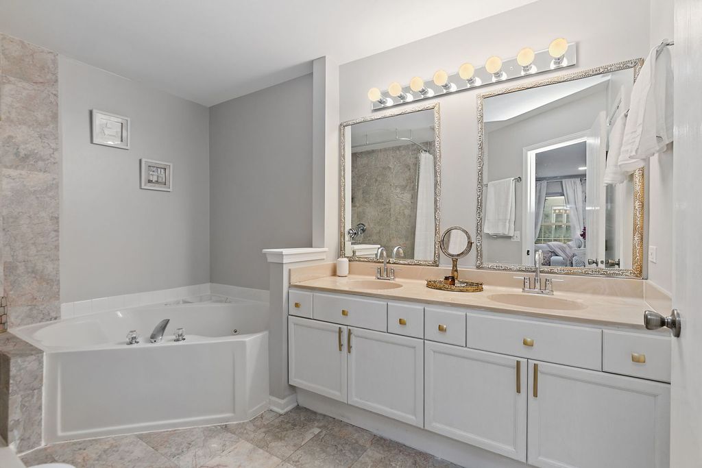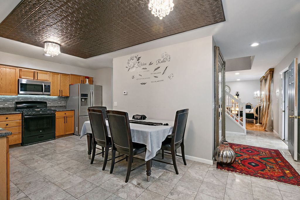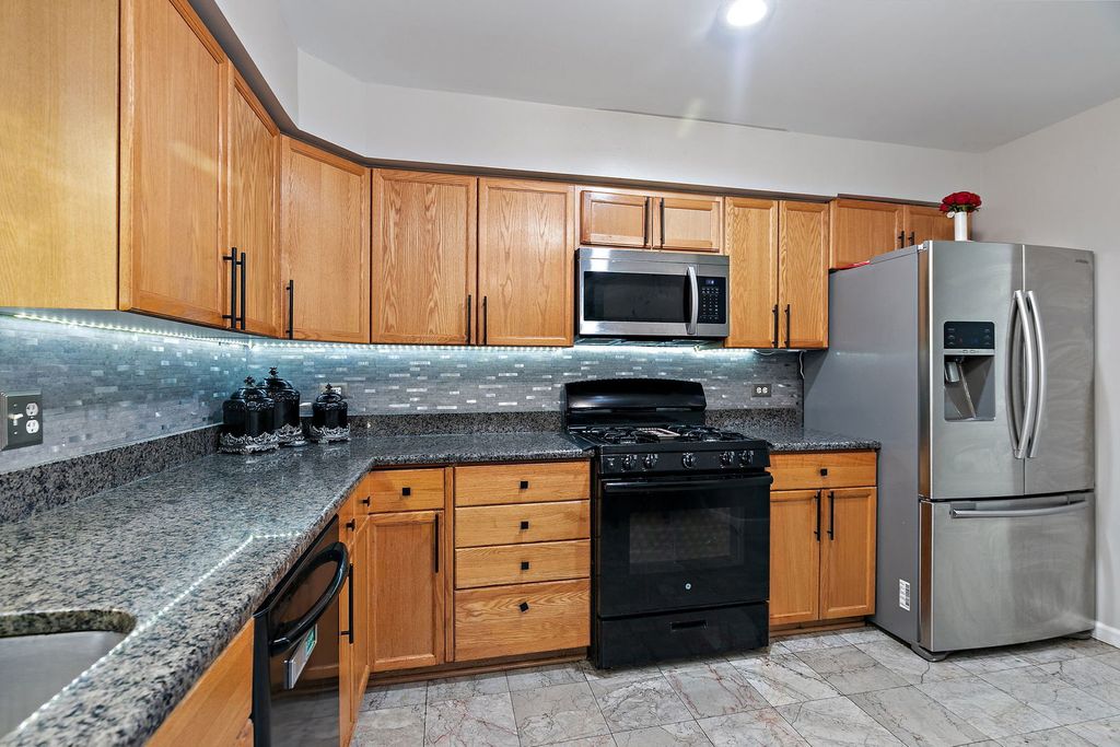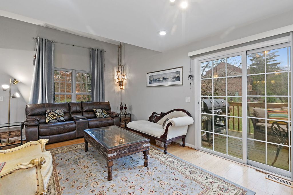 Welcome to this elegant and impeccably maintained duplex residence in Streamwood, where warmth, comfort, and refined finishes come together beautifully. This home delivers a sophisticated living experience with generous space for both everyday living and effortless entertaining. From the moment you enter, you're greeted by freshly painted interiors, rich hardwood flooring, and thoughtfully curated lighting, including recessed fixtures that create a soft, inviting glow throughout the home. The kitchen is truly a showpiece-designed with both beauty and function in mind-featuring marble flooring, gleaming granite countertops, a custom backsplash, pendant lighting, decorative ceiling detail, and an abundance of cabinetry, along with a pantry cabinet and closet for exceptional storage. The main living area exudes comfort with a cozy fireplace (currently electric, with the option to convert back to gas), while the family room offers an inviting space to gather and unwind, seamlessly opening to the outdoor deck-your private retreat for morning coffee or evening relaxation. Upstairs, the luxurious primary suite serves as a true sanctuary, complete with a sitting room- perfect for a reading lounge or private office-along with a spacious walk-in closet. The spa-inspired ensuite bath features a double-bowl vanity, whirlpool tub, and an open walk-in shower designed for both comfort and ease. The second bedroom impresses with a vaulted ceiling, ceiling fan, and its own generous walk-in closet space. Additional highlights include a beautifully updated half bath with a decorative vanity and vessel sink, elegant marble flooring in the kitchen and bath areas, and an oversized family room in the English basement-ideal for a media room, home gym, or guest retreat. Ample storage with built-in shelving ensures everything has its place. Perfectly situated near shopping, dining, public transportation, commuter train access, and major expressways, this home offers a seamless blend of luxury, convenience, and everyday ease. Experience elevated living in a home that truly has it all.