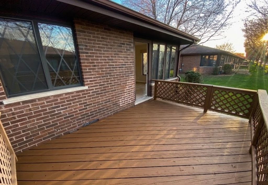Welcome to this charming end unit condo in the desirable Country Villa community of New Lenox! This lovely 2 bedroom ranch offers the ease of main-level living and features 2 full bathrooms for your convenience. An extra window for light in the dinning room. A standout highlight of this home is the bright and inviting sun room, providing a peaceful space to relax and enjoy the quiet surroundings. Deck has been stained in the fall of 2025. Air Conditioner was replaced in 2025. Perfectly situated near schools, shopping, and transportation, it combines suburban tranquility with everyday convenience. Enjoy a maintenance-free lifestyle in a quiet community where you can truly unwind. Schedule your showing today and see why this is the perfect place to call home!