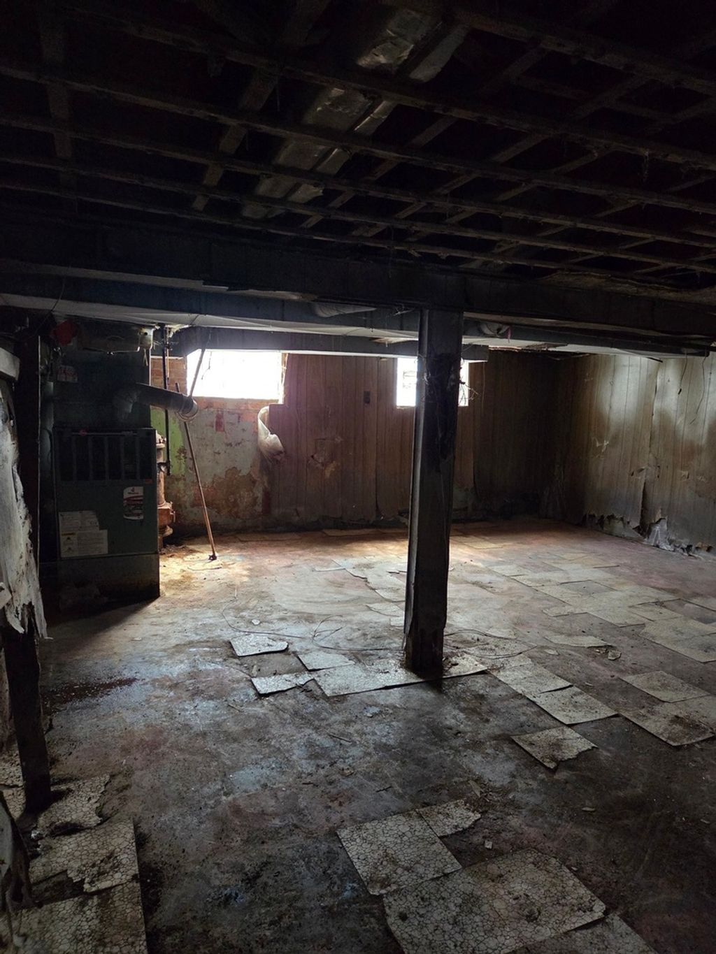 Brick bungalow ready to rehab. Two bedrooms on the first floor and three bedrooms on the second floor. Two full baths above grade. Full finished basement. Property needs rehab, but has much potential. Sold as is. No survey provided.