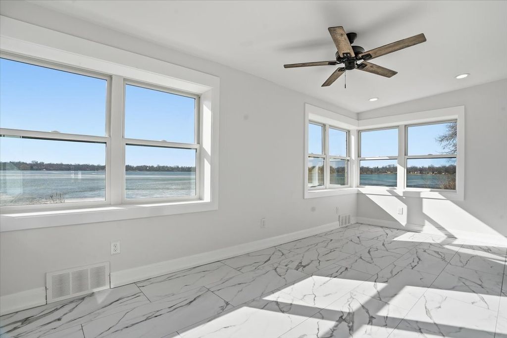 Rare opportunity to own a piece of Round Lake history!! Situated on a double lot in Duell's Shorewood Subdivision, this beauty has been within the same family for three generations and is now looking for its new owners! Featuring 4 bedrooms and 2.5 bathrooms, this completely updated waterfront home has over 100 ft of its own private beach area with sand! With original character shining throughout, the spacious main level is the perfect space for entertaining! Enjoy your morning coffee in the sunroom with water views from every window or watch the sunsets over the lake from your upper-level balcony! Basement is stubbed for a laundry room and an additional bathroom. Conveniently located near shopping and the expressway! Perfect for a full-time residence or Airbnb! Round Lake is excellent for all motor sports and fishing! Low taxes for a lake house!! Opportunities like this do not come around often, set up your private tour today!!!