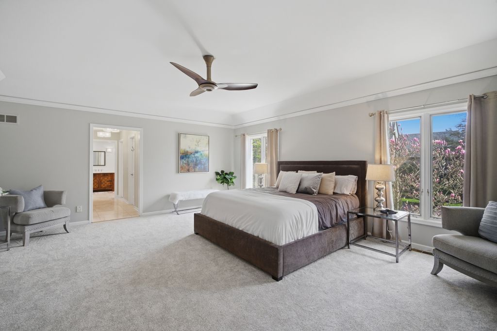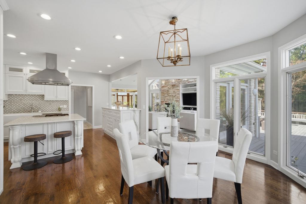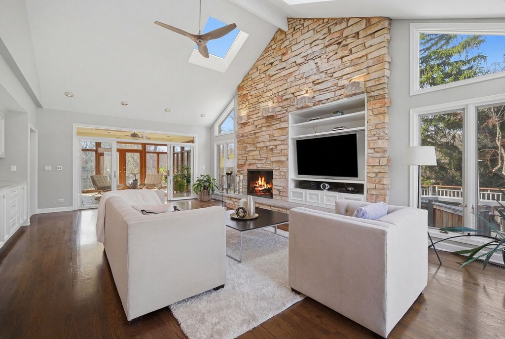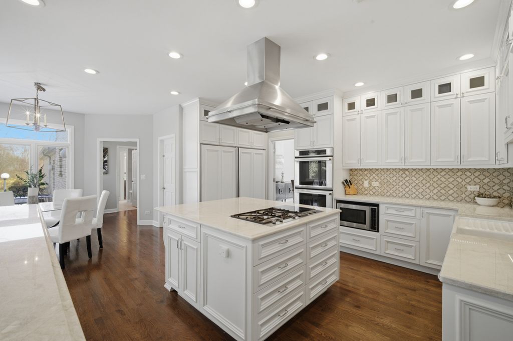 Set at the end of a quiet, private cul-de-sac on a rare acre lot, this custom-built Georgia marble home with an inground pool showcases timeless elegance and exceptional craftsmanship in the Woodley neighborhood of Winnetka. A gracious foyer with stained glass double entry doors, marble tile floors, fresh paint, and a sparkling crystal chandelier, greets you to six bedrooms, four full baths, two half baths and over 5,400 square feet of refined living and sophistication. The eat in chef's kitchen features beautiful quartzite countertops with breakfast bar seating, stacked upper cabinets, walk in pantry, and premium appliances, including a Sub-Zero refrigerator, Thermador double oven, Bertazzoni cooktop with hood, and a Bosch dishwasher. The grand family room offers oak hardwood floors, soaring 15-foot vaulted ceilings with skylights, a striking stone wood-burning fireplace, and a wet bar, all overlooking the newer expansive Trex deck that wraps around the concrete inground pool. A west-facing four-season room is filled with natural light and provides views of the stone paver patio-ideal for summer bonfires. The main level offers an executive office with rich wood paneling, decorative sconces, and a built-in bookcase. Additional highlights include a comfortable living room with second gas-start fireplace and floor to ceiling Pella casement windows, a formal dining room, half bath, a first-floor guest suite with a newly renovated ensuite bath, and a well-organized laundry room with cubbies, wash sink, and folding area. Upstairs, you'll find five spacious bedrooms with brand-new carpet and solid-core doors, along with two full baths. The expansive primary suite features dual walk-in closets, individual vanities, a soaking tub, water closet, and an oversized steam shower. The finished basement adds approximately 2,300 square feet of recreation space, complete with built-in surround sound, a full kitchenette, bookshelves, ample storage, and a half bath. The home offers dual-zoned HVAC, a sump pump with battery backup, central vacuum system, a three-car garage equipped with a 220V outlet for electric vehicle charging, a newer asphalt driveway with stamped concrete front steps, freshly painted exterior, landscape lighting, outdoor speakers, and a partially fenced generous yard for backyard activities. Ideally located on the North Shore with easy highway access, this home is served by the highly sought-after New Trier High School and is within walking distance to award winning Marie Murphy Middle School. A true hidden gem of Winnetka!
