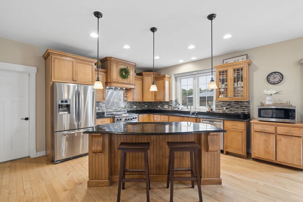 Welcome to 21261 Somerset Street in Shorewood, an exceptional custom-built home. Nestled in the highly desirable Westminster Gardens subdivision, this 2007 residence showcases timeless design, upscale finishes, thoughtfully designed living spaces, and serene natural surroundings, offering a truly distinctive place to call home. As you enter, you're welcomed by a striking Prairie-style staircase, formal living and dining rooms, rich hardwood floors, custom arched entryways, and abundant natural light throughout. Just off the dining room, a beautifully designed butler's pantry features custom cabinetry, a bar sink, and wine storage, perfect for effortless entertaining or creating a convenient morning coffee bar. At the center of the home is the impressive two-story family room, highlighted by a stunning fireplace and expansive windows that flood the space with natural light while showcasing panoramic views of the backyard and pond. This inviting area flows seamlessly into the eat-in chef's kitchen, featuring 42" custom Prairie-style cabinetry, granite countertops, a commercial-grade 36" range/oven, a walk-in pantry, and generous prep and storage space. Just off the kitchen is a versatile craft room, playroom, or home office, ideal for keeping an eye on outdoor activities in the private, tree-lined backyard. This space could also serve as a fifth bedroom if needed. Upstairs, you'll find a luxurious primary suite with two walk-in closets and a spacious en-suite bath featuring a separate walk-in shower, jetted soaking tub, and double vanity. Three additional generously sized bedrooms complete the upper level --one with a private bath-along with a guest bathroom. The laundry room is also conveniently located upstairs. A full unfinished basement offers a blank canvas ready for your vision, whether you're dreaming of additional living space, a home gym, theater, or workshop. This expansive area provides ample storage and endless potential for future finishing. The home also features a 3-car tandem heated garage (23.6 feet wide; one bay is 30.6 feet deep, the other 24.6 feet), a paver patio, playset, hot tub, and mature trees that provide both privacy and a peaceful setting, while still offering beautiful views of the pond's lighted fountain from the hot tub. Additional highlights include two furnaces, two air conditioning units, and a fenced yard. You're going to love this home.
