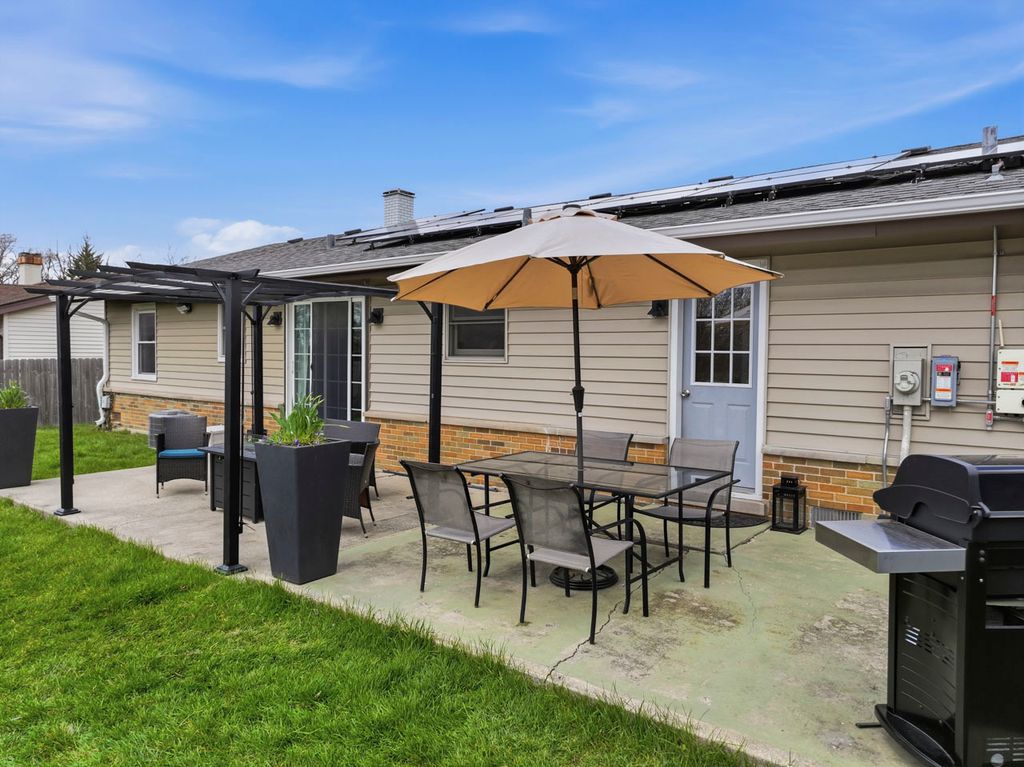 Ranch style home offers a seamless open-concept layout, ideal for both everyday living and entertaining. Sun-filled living and dining areas flow effortlessly into a spacious galley kitchen, complete with newer stainless steel appliances, abundant cabinetry, pantry storage, and generous counter space. The home showcases neutral decor and stylish, low-maintenance wood laminate flooring throughout. A striking shiplap accent wall with an electric fireplace adds warmth and character to the living room. Expanded laundry room with sliding barn door adds both function and style. Step outside to a large, fully fenced backyard featuring a patio with pergola-perfect for outdoor gatherings-along with a sizable storage shed. Thoughtfully maintained and move-in ready, this home also includes smart features such as a Nest Yale lock, Hue lighting system, and Nest thermostat with Google integration. Major updates include: laminate flooring and kitchen appliances (2019/2020), dryer, and significant exterior and mechanical improvements in 2021 including HVAC (furnace & A/C), roof, gutters, and chimney. Ideally located near schools, parks, shopping, and popular Rainbow Falls Water Park. Great opportunity to own a solid home in a convenient location-don't miss it.
