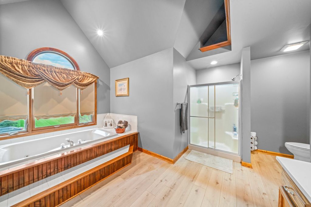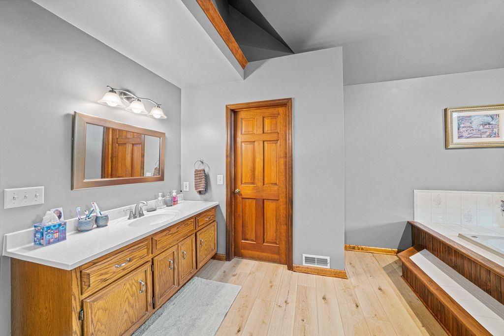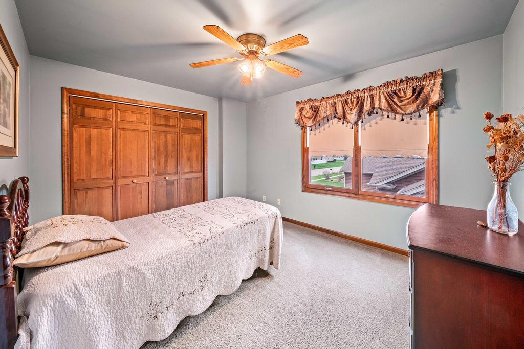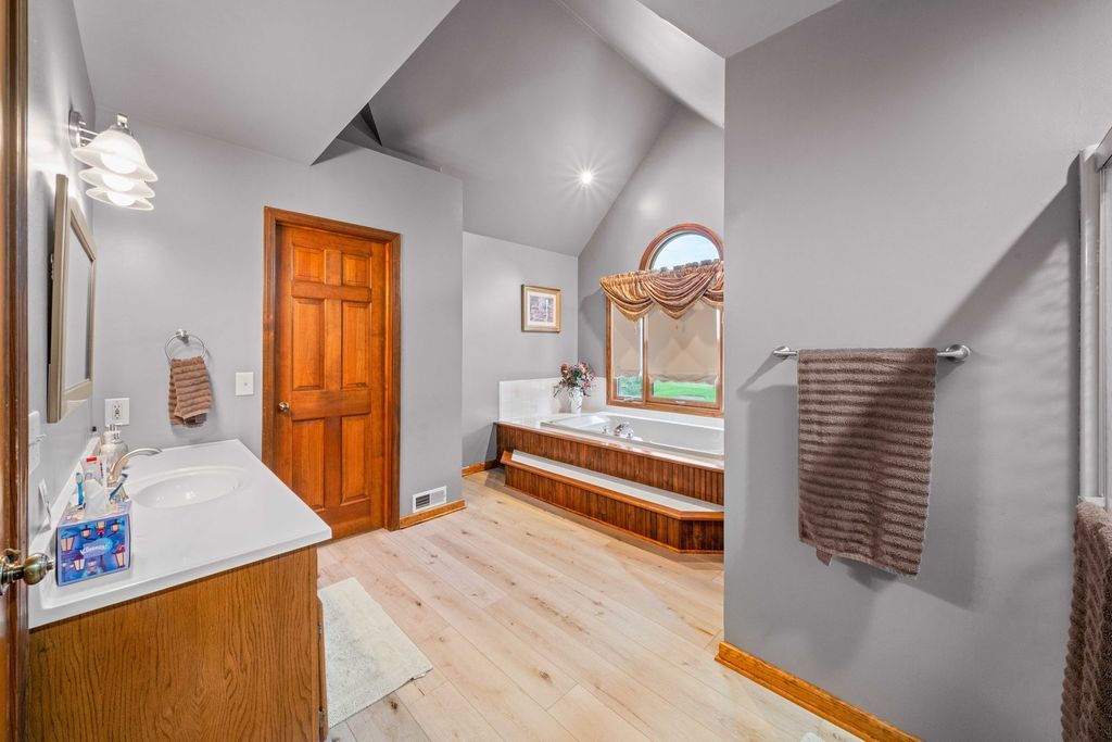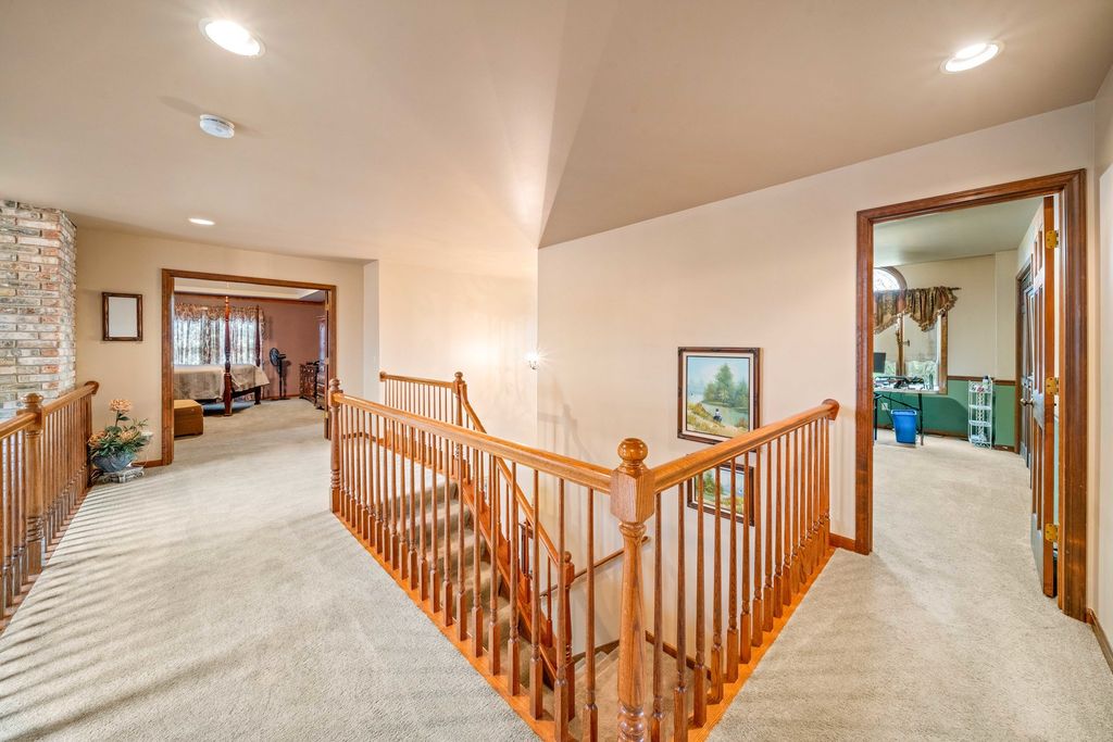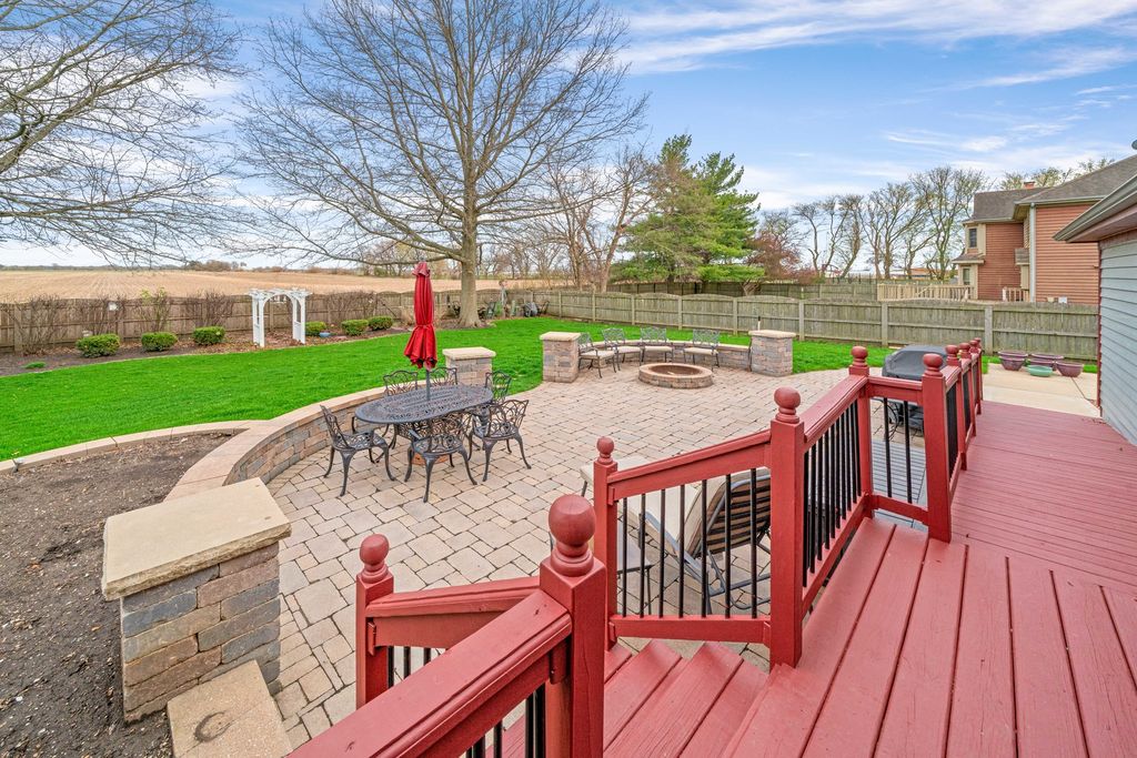 Welcome to this spacious and beautifully maintained 5-bedroom, 4-bathroom home offering 2,700 square feet of comfortable living in the heart of Hinckley! Perfectly located just steps from the local high school, this home combines convenience, space, and functionality for today's lifestyle. From the moment you arrive, you'll be drawn in by the beautiful wrap-around porch-perfect for morning coffee, evening relaxation, and enjoying the charm of the neighborhood. Inside, you'll find a thoughtfully designed layout with generous living areas, ideal for both everyday living and entertaining. The large kitchen flows seamlessly into the main living space, creating a perfect gathering spot for family and guests. A highly sought-after first-floor bedroom and full bath provide excellent flexibility-ideal for guests, related living, or a private home office. You'll also appreciate the convenience of first-floor laundry, making day-to-day living even easier. Upstairs and down, enjoy plenty of room to spread out, with well-sized bedrooms and ample storage throughout. The primary suite offers a private retreat, complete with its own full bath. The partially finished basement expands your living space even further, featuring a rec room with a bar-perfect for entertaining-along with an additional bedroom, full bathroom and multiple storage rooms. Step outside to your private backyard oasis featuring a brick paver patio-perfect for entertaining or unwinding. The fenced-in yard backs to a peaceful cornfield, offering scenic views and added privacy year-round. Car enthusiasts and hobbyists will appreciate the rare 3.5-car heated garage, providing ample space for vehicles, storage, or a workshop. With its unbeatable location, versatile floor plan, and exceptional indoor and outdoor features, this Hinckley home is one you won't want to miss!