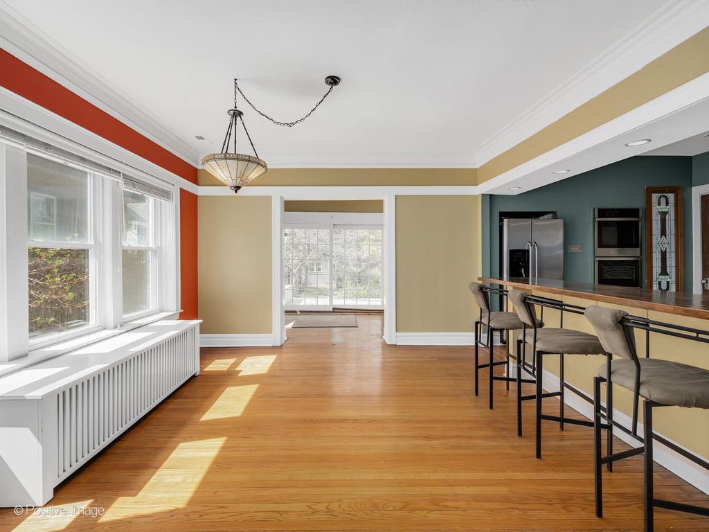 Great Oak Park location! this inviting home offers a warm, comfortable layout with great natural light and timeless hardwood floors throughout. The kitchen opens to the dining room, creating an easy flow for both everyday living and entertaining, while the spacious front family room with fireplace adds charm and a cozy place to gather. The upstairs bathroom features heated floors for an added touch of comfort, and the included Murphy bed provides flexible space for guests, a home office, or both. Outside, the extra-deep lot offers plenty of room to enjoy or expand, complete with a deck, shed, and convenient alley access. Plans for expansion are included / attached to listing.