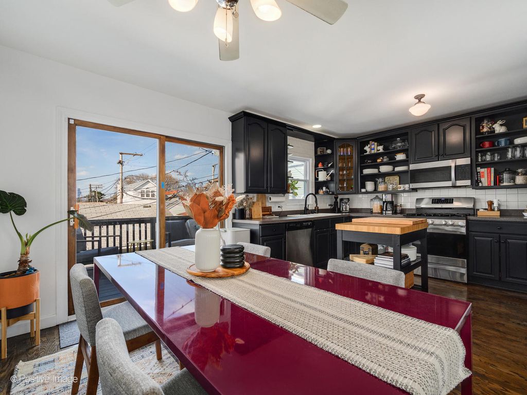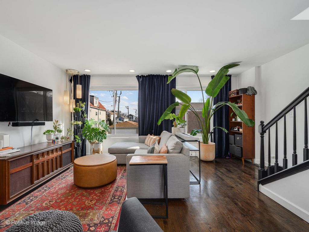 Incredible opportunity in Canaryville/Bridgeport! This rare 3-level end-unit townhome lives like a single-family home and offers a fully fenced yard, plus two additional private outdoor spaces, attached garage parking plus exterior spot, and NO Monthly HOA. Bright southern exposure, tall windows, and a large skylight fill the home with natural light, while stained oak hardwood floors run throughout the interior. The main level features a spacious living room with a gas fireplace and brick mantel, a dining area with space for a full table, and a beautiful wraparound kitchen with extensive counter space, stainless steel appliances, 42-inch cabinetry, pantry storage, with room for a center island. The entry level offers an inviting foyer and a flexible family room, den, or office with direct access to a large private backyard and laundry room with full size washer dryer. Upstairs are two generous sized bedrooms, including a primary bedroom with a row of organized closets and private balcony, along with a huge beautifully updated bath finished with a white quartz dual vanity, custom tile, and linen storage. Additional improvements include newer Rheem furnace and central air (2023), newer south-facing windows (2023), skylight (2023) LG ThinQ washer and gas dryer (2023), LG refrigerator (2024), and Ecobee thermostat. Impeccably maintained with excellent storage and exceptional outdoor space, this is a rare offering in a convenient location near neighborhood favorites like Rate Field and the chance of catching White Sox fireworks from your back deck.