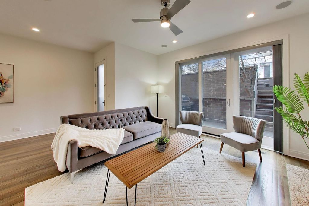 An extraordinary, design-forward townhome offering four bedrooms and four-and-a-half baths, thoughtfully crafted for those who value both elevated aesthetics and uncompromising comfort. Located in the heart of highly sought-after Roscoe Village, this newer-construction residence delivers a rare combination of refined architecture, expansive living, and seamless indoor-outdoor flow-all with the feel of a single-family home. The main level is a statement in modern sophistication, defined by soaring ceilings, wide-plank hardwood flooring, and dramatic natural light pouring through oversized windows. A striking floor-to-ceiling stone fireplace anchors the living space, creating an atmosphere that is both warm and architecturally impactful. At the heart of the home, the chef's kitchen is nothing short of exceptional-featuring a showstopping waterfall island, sleek custom cabinetry, quartz countertops, and a full suite of high-end stainless steel appliances. Designed for both everyday living and elevated entertaining, the space flows effortlessly into a spacious dining area and out to a private terrace. Each of the four bedrooms is generously proportioned, offering privacy and flexibility, while the primary suite serves as a serene retreat. The spa-inspired primary bath is appointed with sophisticated finishes, delivering a calming, hotel-like experience. With four full baths and an additional powder room, the home offers both luxury and convenience for residents and guests alike. Multiple private outdoor spaces provide a rare urban sanctuary-perfect for morning coffee, evening cocktails, or hosting under the open sky. A dedicated outdoor area for grilling further enhances the lifestyle offering. Perfectly positioned within Roscoe Village, this home offers immediate access to some of Chicago's most beloved neighborhood amenities. Enjoy a vibrant dining scene with acclaimed restaurants, charming cafes, and neighborhood favorites just steps away. Boutique shopping and everyday conveniences line nearby streets, creating an effortlessly walkable lifestyle. Outdoor enthusiasts will appreciate proximity to Hamlin Park and the Chicago River, while convenient access to the CTA Brown Line, major bus routes, and nearby thoroughfares ensures a seamless commute to downtown. Set within a striking, contemporary brick building, this residence exudes timeless quality and modern design-offering the scale, privacy, and livability of a single-family home with the convenience of townhome living. A truly exceptional offering for the discerning buyer seeking luxury, location, and lifestyle.