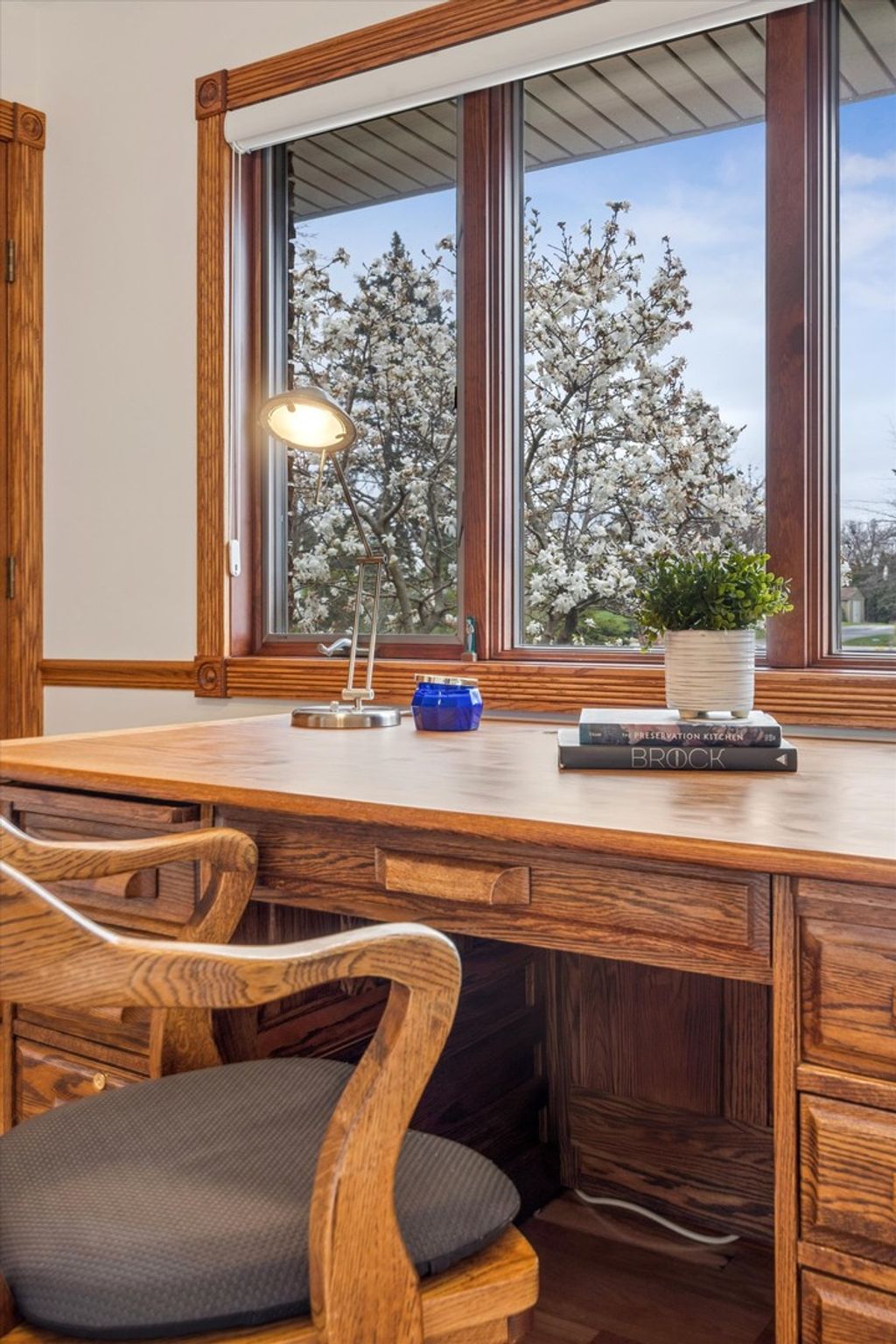 All brick raised ranch overlooking Lake Tampier. Discover the retreat you've always wanted. Situated on a sprawling, professionally landscaped one-acre lot overlooking the serene waters of Tampier Lake, this custom-built brick ranch is a testament to solid, high-quality construction and has been exceptionally well-maintained through the years. Quality materials & million-dollar views this home was custom built with a focus on durability and timeless comfort, the heart of this home is defined by its connection to nature. Full-height windows span the rear of the residence, framing breathtaking, panoramic views of the lake. Updated gourmet kitchen featuring a premium appliance suite including Sub-Zero, Wolf, Thermador, and Bosch. Enjoy a floor plan designed for real life, with an eat-in kitchen, formal dining room, family room, and living room centered by a classic full height gas log gas start fireplace. Four generous bedrooms reside on the main level, including a large primary en suite and a dedicated home office-perfect for today's work-from-home needs. Walkout Lower Level provides unmatched versatility & massive storage. The finished walkout level offers incredible flexibility for hosting guests or managing a large household, doubling the home's functional footprint. Entertainment & comfort abound. A massive great room with fireplace leads directly out to the backyard, complemented by a 6th bedroom and full bath. In addition to an abundance of storage space, the lower level features a specialized workshop or secondary garage-the ideal indoor sanctuary for a boat, sports car, or hobbyist's workshop. Truly an outdoor oasis when you step outside to a massive backyard that feels like living in the heart of the forest preserve. Whether you are hosting on the large custom paver patio or simply enjoying the quiet lakefront breeze, the privacy and "peace and quiet" here are unmatched. This is a rare opportunity to own a solidly built, meticulously cared-for home with premier water views. Experience the permanence of quality construction paired with the tranquility of the outdoors.