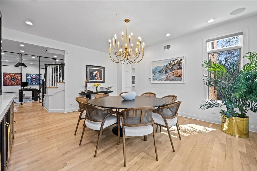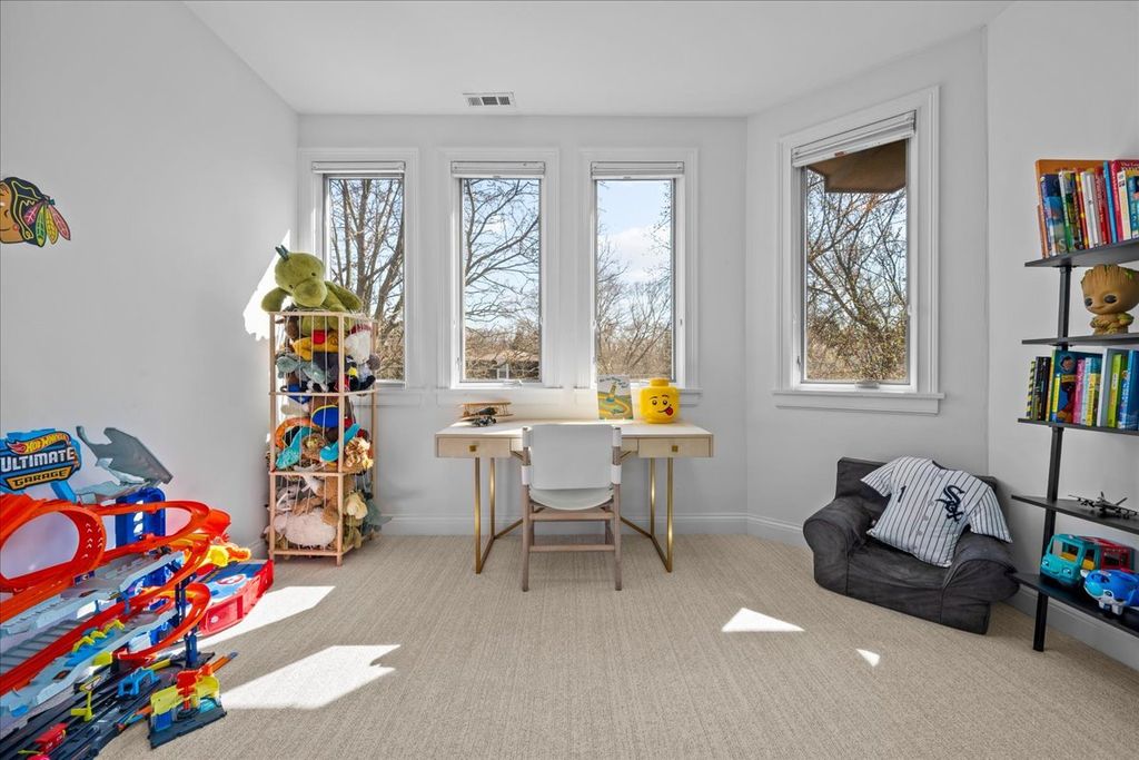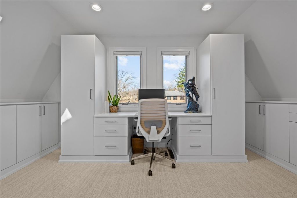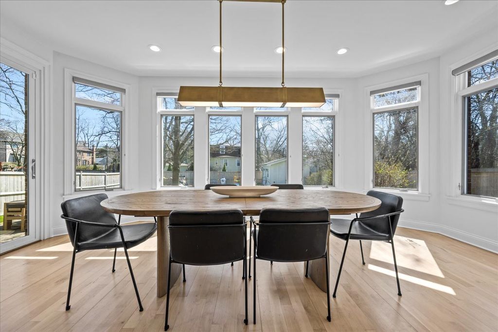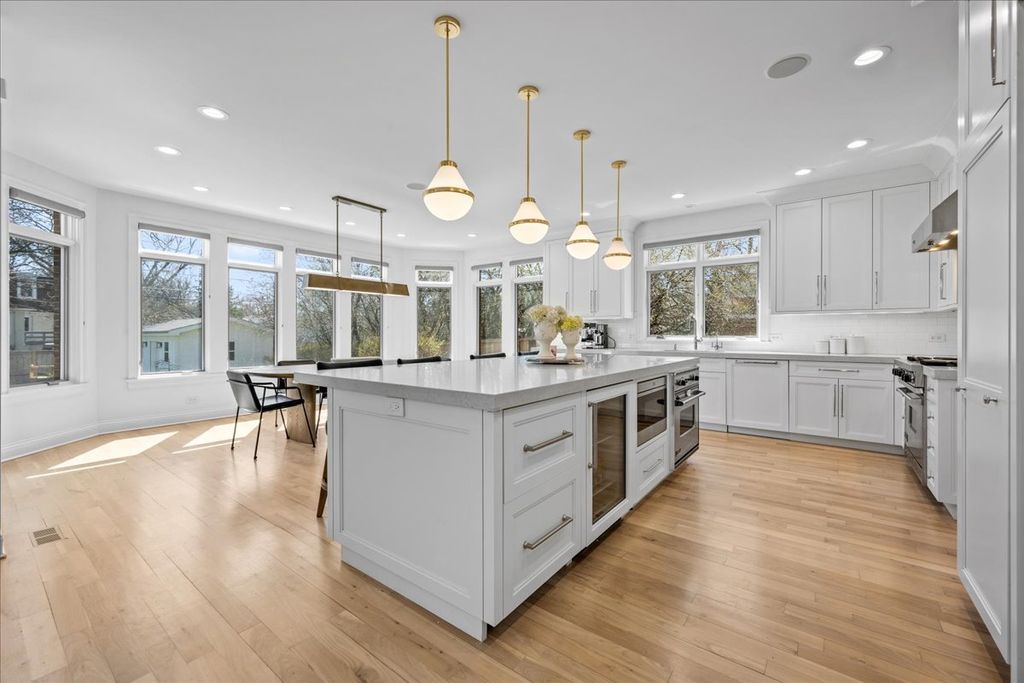 The perfect home on one of the most desirable streets in the Braeside neighborhood! This beautifully appointed 5-bedroom, 5 full bath and 1 half bath home blends luxurious finishes with thoughtful design and exceptional functionality. Recent improvements include re-stained wide-plank hardwood floors, new carpeting throughout, all new lighting fixtures, a remodeled powder room, and a reconfigured basement. The first floor features a private office with a sun-filled bay window, built-ins and a custom steel-and-glass wall with French door entry. The formal dining room is ideal for entertaining, complete with a designer brushed brass chandelier and a built-in bar with white quartz countertop, new brass hardware, two wine refrigerators and an ice maker. The stunning chef's kitchen offers custom white cabinetry with new polished nickel hardware, quartz countertops, white subway tile backsplash, professional-grade stainless steel appliances, including a Viking range, an additional built-in Viking oven in the island, a Sub-Zero refrigerator/freezer, additional integrated Sub-Zero refrigeration drawers, a wine/beverage refrigerator and two Miele dishwashers, plus an oversized island with seating and designer pendant lighting. A generous eat-in area with a wall of windows overlooks the fully fenced yard with a new designated playground area, and features sliding doors that open to the large paver patio. The kitchen opens seamlessly to the spacious family room, creating the perfect layout for everyday living and entertaining. A gorgeous powder room and an oversized mudroom/laundry room with porcelain heated floors, built-in lockers, double washer/dryers, and abundant storage lead to the heated 3-car garage. The second floor offers a spacious primary suite with vaulted ceilings, built-ins, a sitting area, French doors leading to a private office, and two walk-in closets. The spa-like bath features heated floors, a large steam shower, double vanities, an additional makeup vanity, and a private commode closet. Three additional generously sized bedrooms each have en-suite baths, and two of the three also include attached flex spaces ideal for a playroom, study area or office. The huge finished walk-out basement includes two large recreation spaces - one with a built-in wet bar - plus a fifth bedroom, a full bathroom, and access to the finished shed, currently used as a home gym, but easily suited for a studio, office, or creative workspace. This exquisite home truly checks every box and is not to be missed.