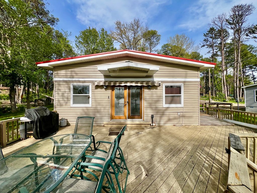 Welcome to Shallow Waters Cottage. 2 bedroom, 2 bath lakefront home located at West Frankfort Lake with beautiful water views and a setup ready to enjoy from day one. The home features a large deck overlooking the lake, perfect for relaxing or entertaining. A stone walkway runs along both sides of the home, leading you to the deck and creating an inviting path to your outdoor living space. Down by the water, you'll find a private dock with a covered gazebo-ideal for enjoying long days on the lake. The sandy shoreline offers your own private beach experience. Additional features include a large parking area with a storage shed-plenty of room for guests, lake toys, or extra storage. You will also enjoy the luxury of heated floors in the master bedroom and both bathrooms. Recent updates include a new roof and HVAC, giving peace of mind on the big-ticket items. Great opportunity for a full-time residence or weekend getaways!