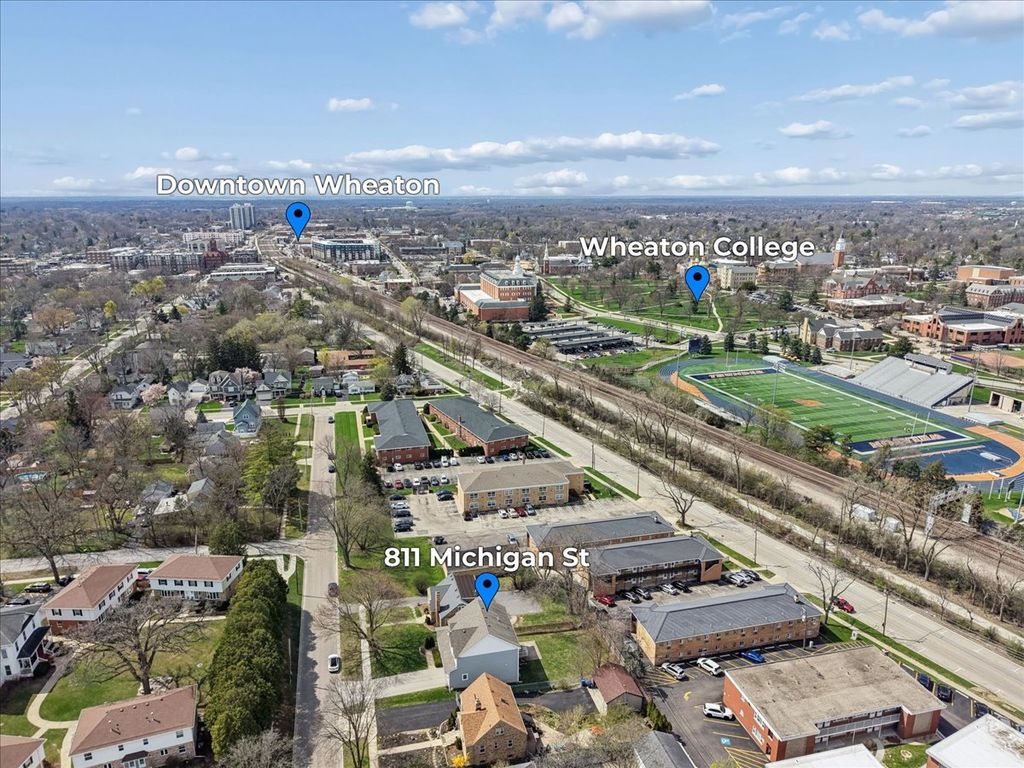 Welcome to 811 Michigan St, where modern design meets an unbeatable Wheaton location. Built in 2018, this beautifully maintained home offers over 3,200 square feet of living space, including a finished basement, delivering refined living with a bright, open floor plan and premium finishes throughout, all just moments from everything Wheaton has to offer. A spacious foyer welcomes you in, adjacent to a private first-floor office and half bath. Stylish barn doors open to a warm and inviting living room, featuring a cozy fireplace with a stone surround, and seamlessly connect to the heart of the home, the kitchen. Designed for both everyday living and entertaining, the kitchen features stainless steel appliances, granite countertops, a breakfast bar, white subway tile backsplash, and a generously sized walk-in pantry. The adjacent dining area opens to the backyard through sliding glass doors, creating the perfect indoor-outdoor flow. Upstairs, the expansive primary suite offers a vaulted ceiling, dual walk-in closets, and a spacious en suite bath with double vanities and granite countertops. Three additional bedrooms, a full hall bath, and a convenient laundry room with a utility sink and cabinetry complete the second level. The fully finished basement offers an impressive extension of the home's living space, featuring hardwood floors, a full bath, and abundant storage, perfectly suited for entertaining, guest accommodations, or a private home gym. The home is also equipped with a whole-house generator for added peace of mind. Located within highly sought-after District 200 and just a short walk to Wheaton College, the College Ave Train Station, the Illinois Prairie Path, and vibrant downtown Wheaton, this home delivers the perfect blend of luxury, convenience, and lifestyle. Schedule your showing today...this home truly checks every box.