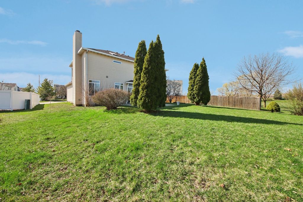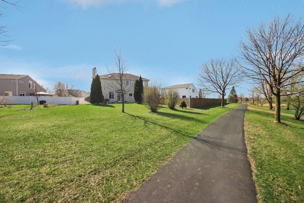 Welcome home to this beautiful 5-bedroom home on a Cul-D-Sac in Huntington Estates! Offering 3.5 bathrooms and a spacious open layout, this home is designed for both comfort and functionality. The large kitchen features 42" cabinets, quartz countertops, a generous island, and abundant storage. The first floor boasts 9-foot ceilings, a cozy family room with a fireplace and brick surround, as well as separate living and dining rooms-perfect for entertaining. Upstairs, the expansive primary suite includes a private bath with dual vanities, a skylight, a Jacuzzi tub, and a walk-in closet. The fully finished basement adds even more living space, complete with a bathroom and a fifth bedroom-ideal for guests or extended family. Step outside to a backyard that backs to open space and a walking path, along with a concrete patio for relaxing or entertaining. Roof and siding 2021, furnace 2017 and water heater 2015. Conveniently located near Bolingbrook Hospital, major expressways, shopping, and schools, this home truly has it all!