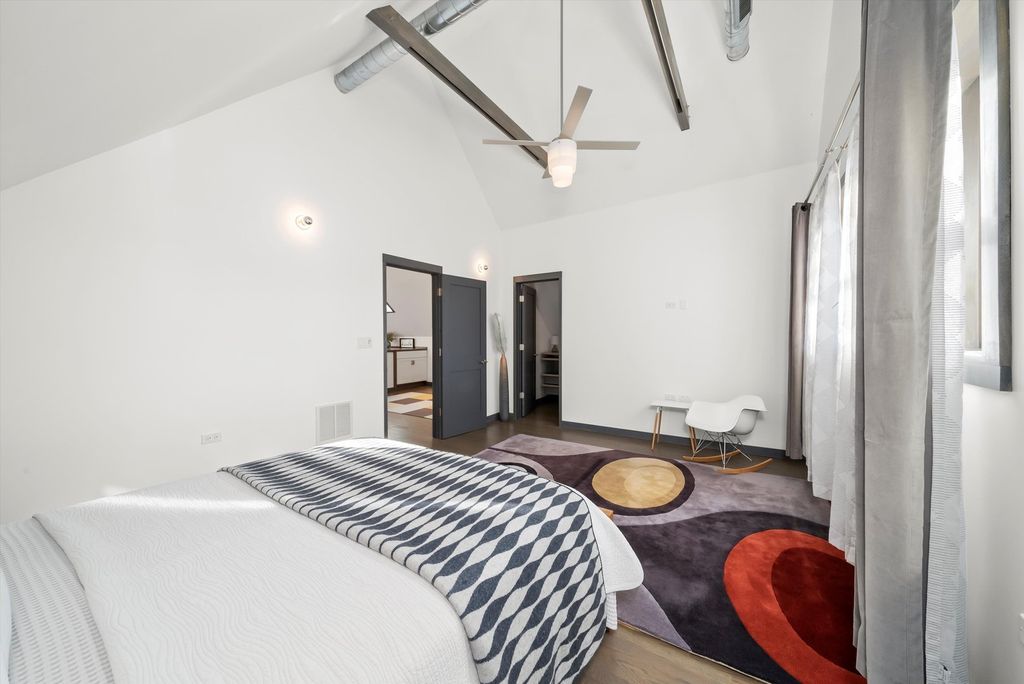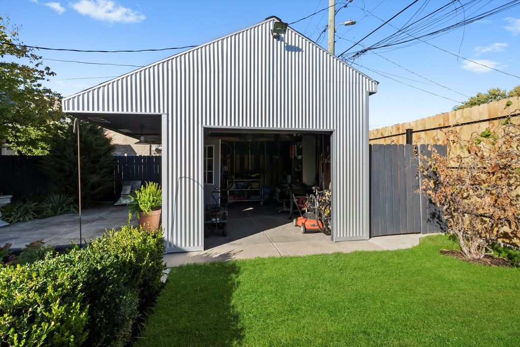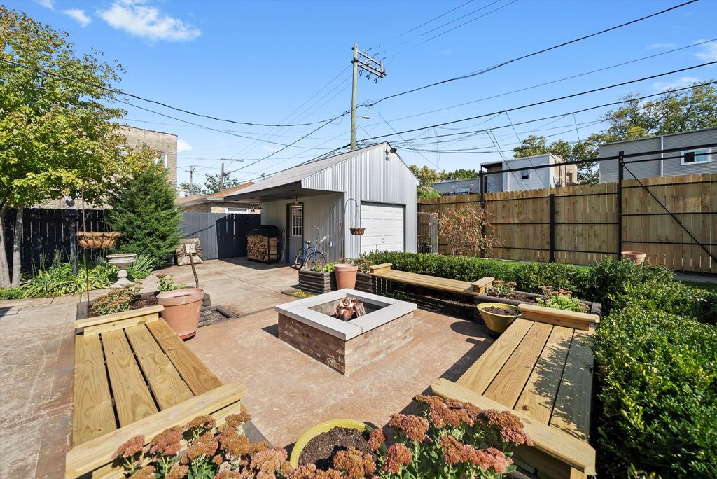 Architect-owned and meticulously renovated with a full interior gut rehab, this stunning brick bungalow sits on an exceptionally rare triple lot in the heart of Humboldt Park. Marrying vintage charm with high-end modern upgrades, this 3 bedroom, 3 bath home offers space, style, and thoughtful design at every turn. The main level offers rich hardwood floors and preserved vintage details, including original salvaged oak baseboards and custom poplar window trim. The formal dining room offers the perfect setting for entertaining, flowing seamlessly into the chef's kitchen. This standout space features stainless steel appliances, a modern range hood, custom cabinetry, and recessed lighting. A bright family room sits at the rear offering views of the expansive yard, while a spacious main-floor bedroom and full bath add flexibility for guests or office space. Upstairs, the primary suite offers a peaceful escape with a private balcony, a spa-inspired bath featuring a soaking tub and walk-in shower, and custom-organized walk-in closets. The second bedroom provides ample space and light. Also on this level, a skylit laundry room with side-by-side washer & dryer and a cozy sitting area or office nook. Set on a fully fenced and landscaped triple lot, the outdoor space is a true urban oasis. Mature trees frame the yard, which includes a custom fire pit with limestone cap, a galvanized steel shed, and a new rear porch. An 8-foot privacy fence encloses the grounds, while a gated side driveway with an electric gate offers secure off-street parking for up to six cars. Both the front and rear iron fencing were restored and repainted, preserving the home's historic curb appeal. This home is as practical as it is beautiful. Thoughtfully reworked throughout, the home features a fully spray-foam-insulated 2x6 framed shell, all-new water and electric service, dual high-efficiency HVAC systems, and a 50-amp EV-ready garage sub-panel-delivering exceptional comfort and efficiency. The full, unfinished basement-with both interior and exterior access-offers exceptional potential for additional living space, an income-producing unit, or multi-generational living. High 8'6" ceilings and flexible access points make it a blank canvas for your vision. Ideally located just six blocks from the 606 Bloomingdale Trail and one mile from the west entrance of Humboldt Park. This rare and remarkable property offers exceptional efficiency, thoughtful updates, and impressive space and flexibility-all within a timeless vintage brick exterior. A true urban sanctuary and a standout opportunity!